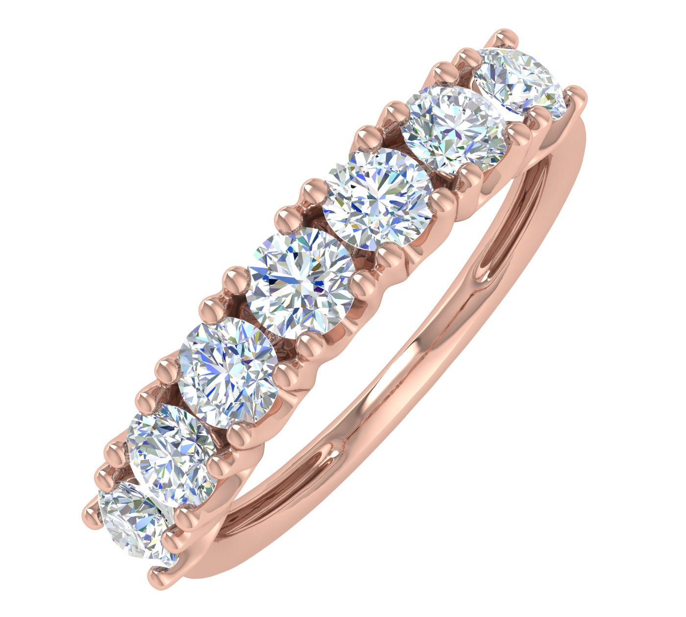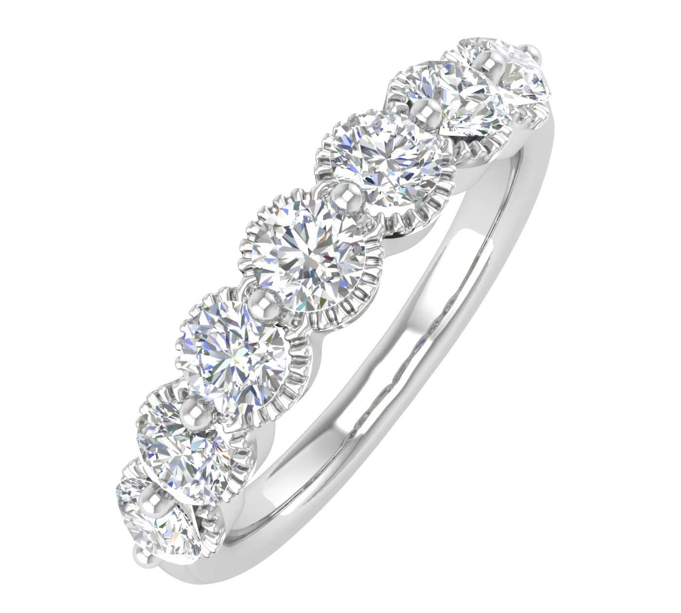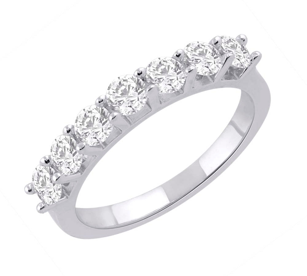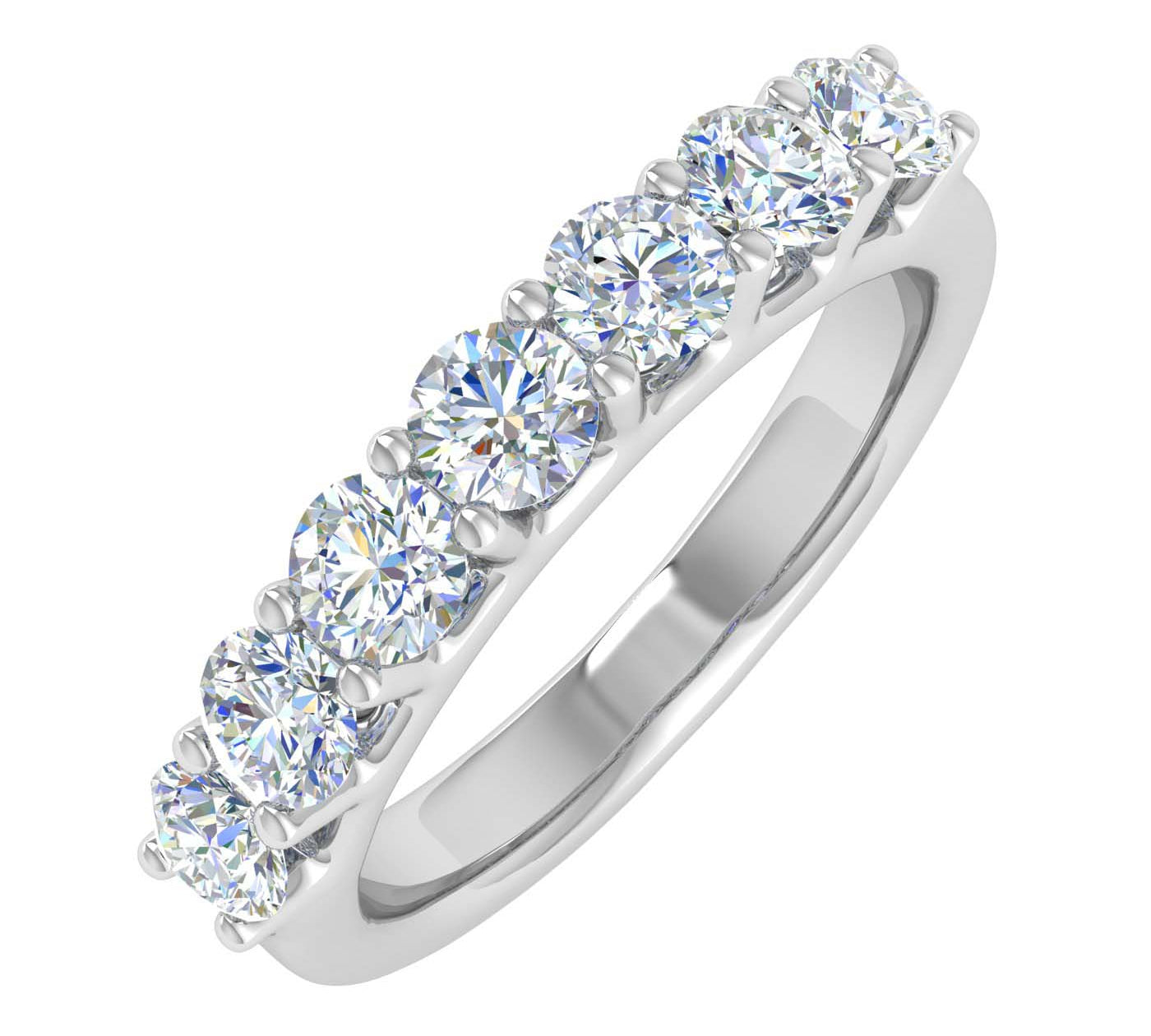 Popular carat weights for 7-stone diamond wedding rings range from 0.50 carat to 2 carats; it often depends on your desired look.