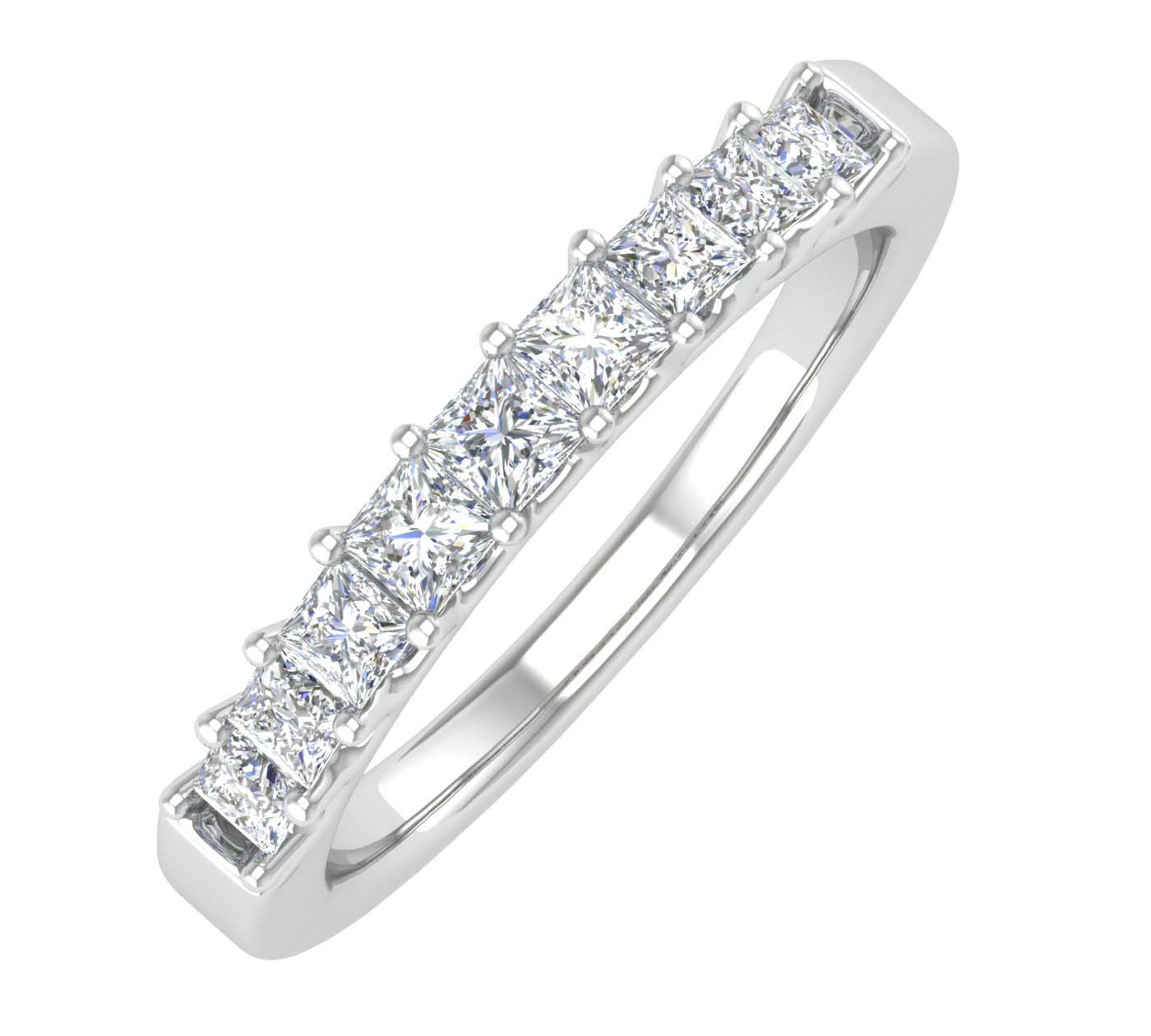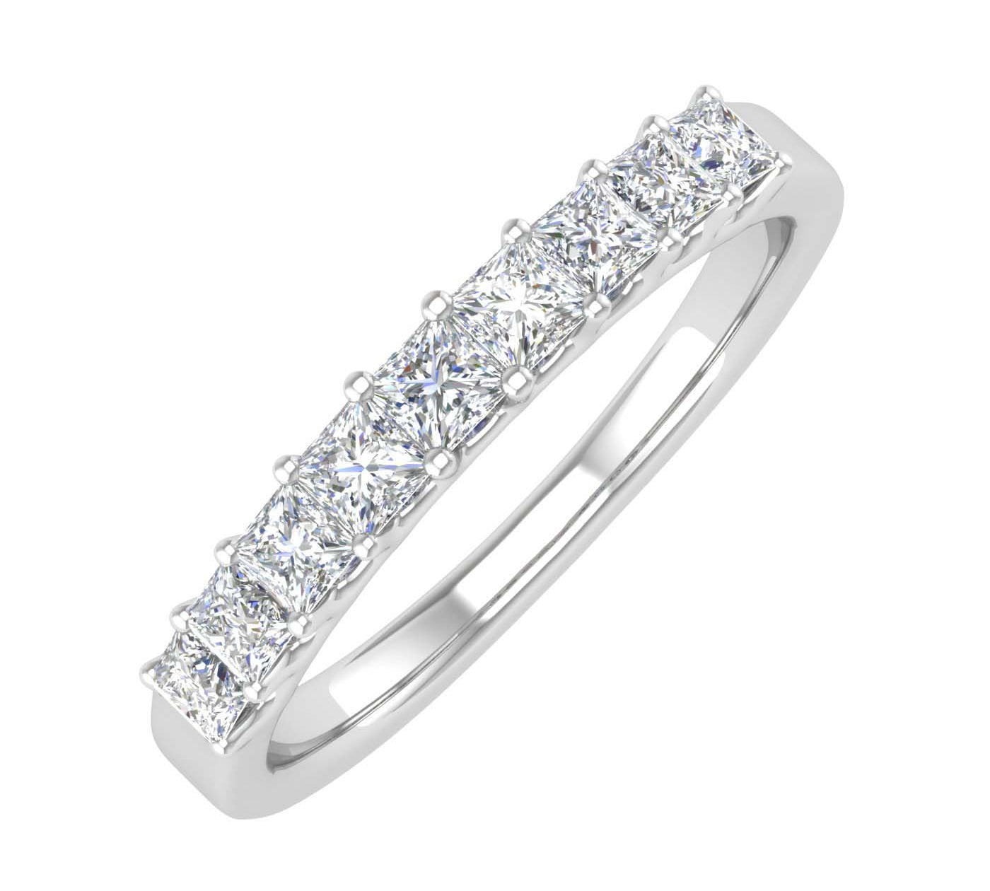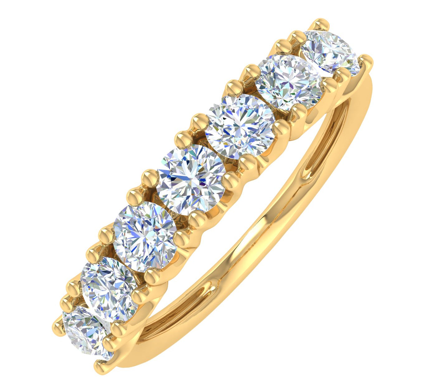 Popular carat weights for 7-stone diamond wedding rings range from 0.50 carat to 2 carats; it often depends on your desired look.
