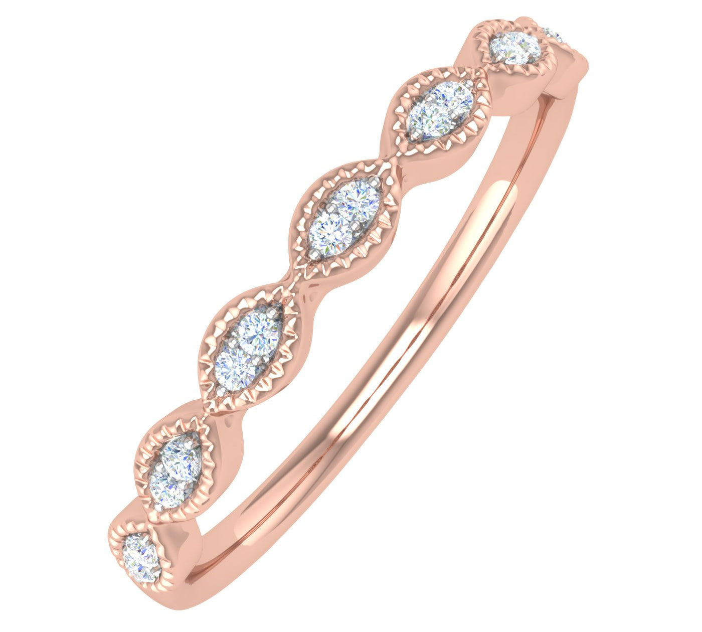 Every vintage diamond wedding band honors different artistic periods such as Art Deco, Victorian, Edwardian and Retro. With the bold geometry and symmetry of delicate floral motifs and heart-shaped stones, each design element carries its own charm and meaning. These patterns aren’t just visually stunning- they offer a deep, emotional connection to the artistry of the past. The exceptional attention to detail and elaborate settings that enhance the brilliance of each diamond, every vintage-style wedding ring tells a story of love, legacy, and timeless beauty.