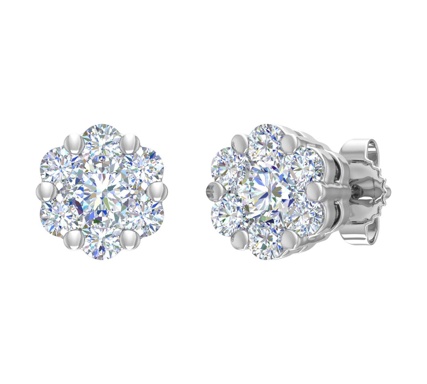 Cluster diamond earrings are designed to deliver maximum sparkle with a refined look. By artfully grouping smaller diamonds, they create the stunning illusion of a larger, radiant stone, perfect if you want that dazzling sparkle without the premium price tag. Diamond cluster stud earrings strike the right balance for any occasion, from a formal event to your casual, everyday style. Light and eye-catching, these earrings offer a smart way to enjoy the luxury of diamonds without compromising on quality or beauty.