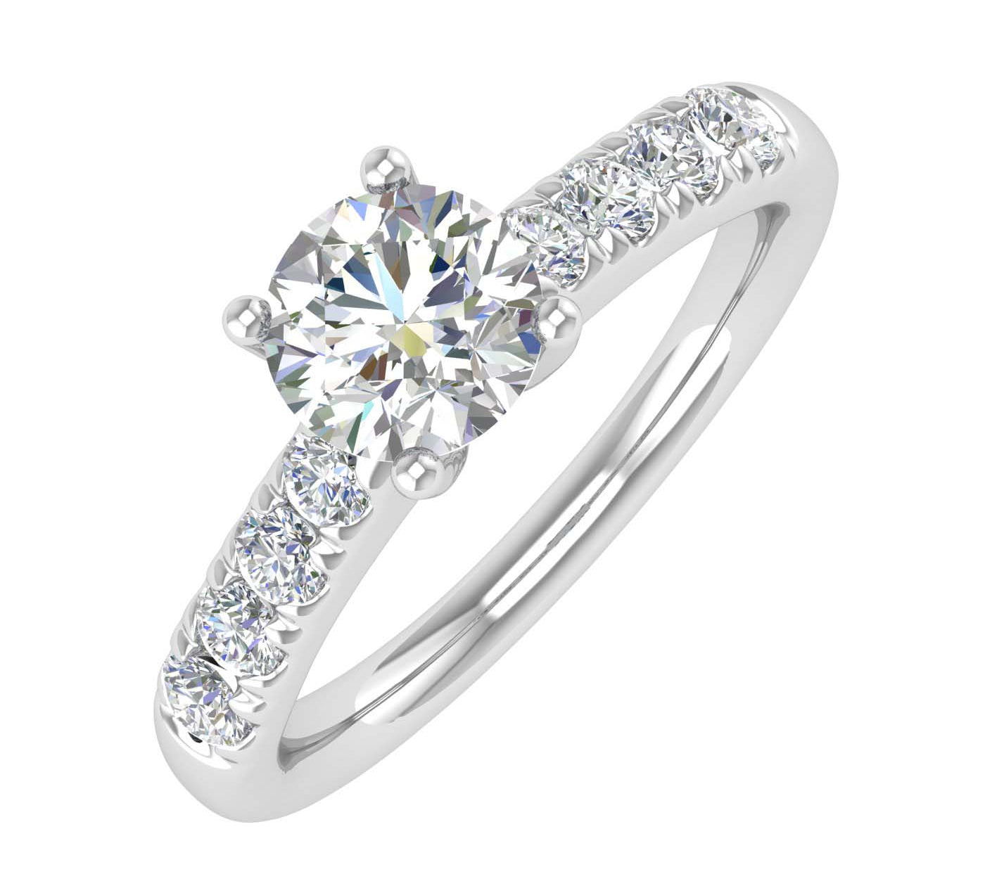The round brilliant cut is most popular for classic engagement rings, due to its unmatched sparkle and appeal.