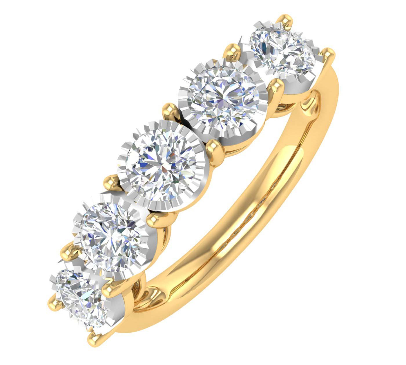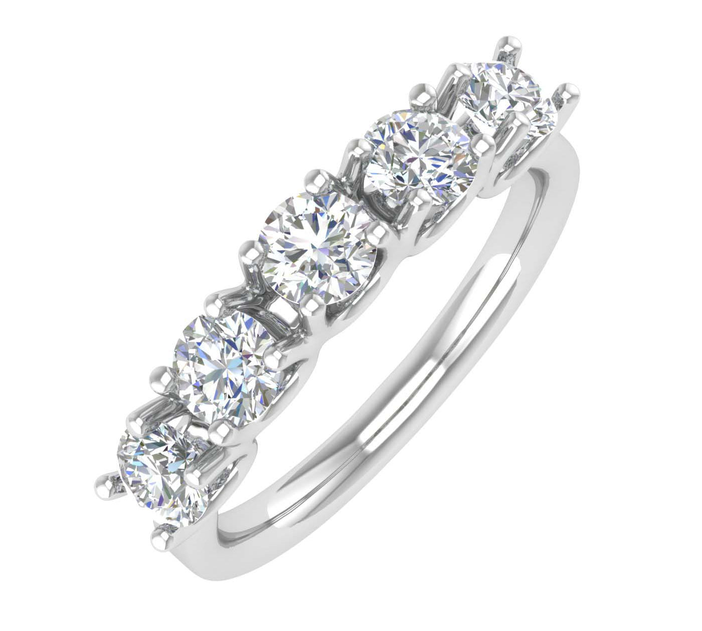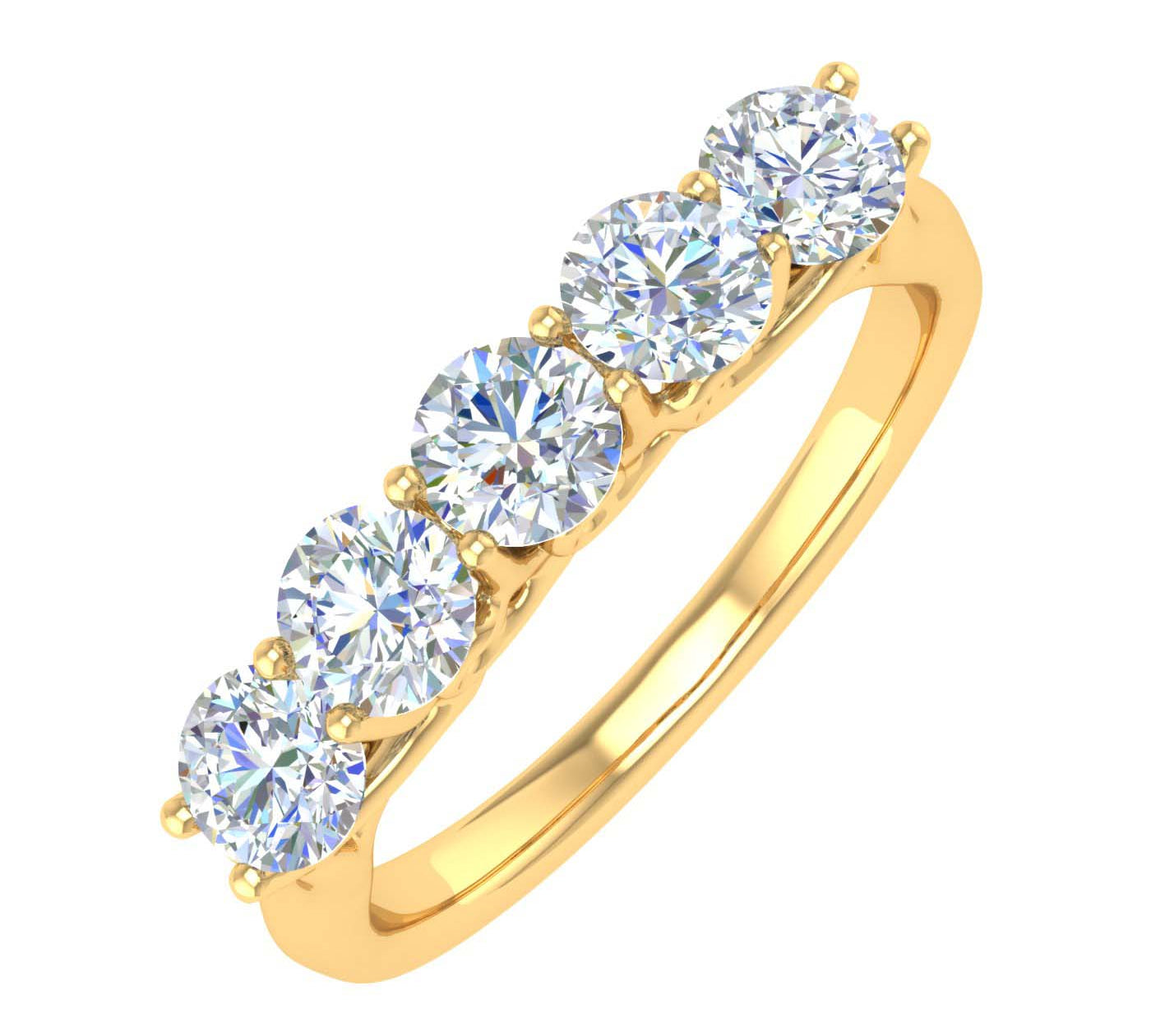 1 Carat 5-Stone Diamond Wedding Band Ring in Gold - IGI Certified