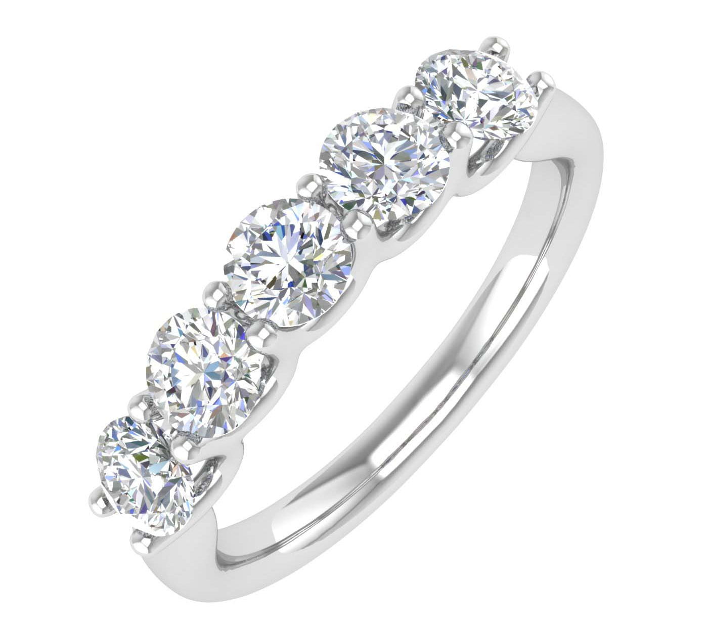 1 1/2 Carat 5-Stone Diamond Wedding Band Ring in Gold - IGI Certified