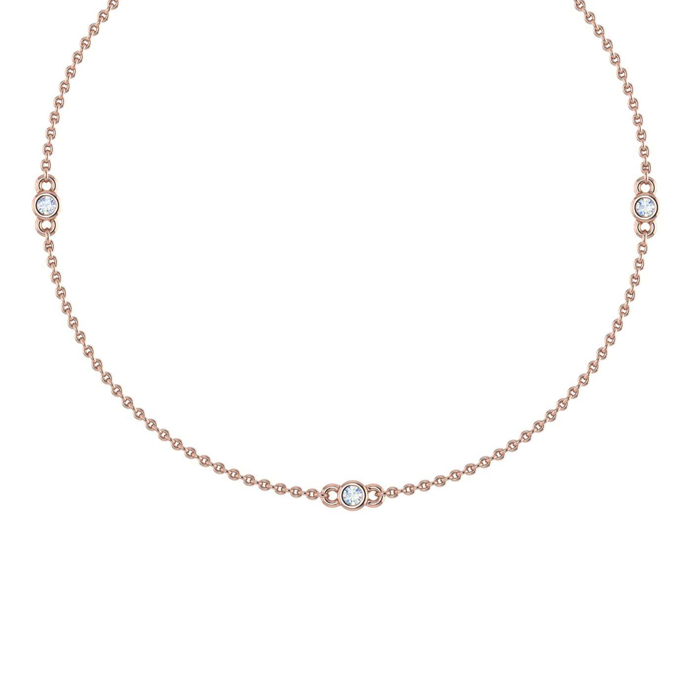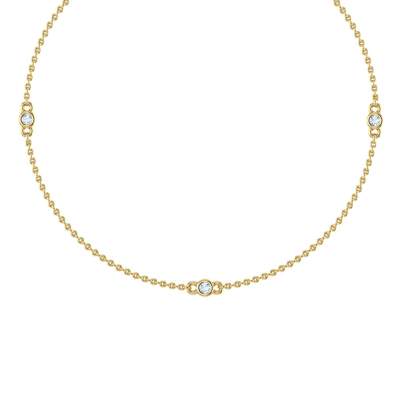 0.05 Carat Diamond By Yard 3 Station Necklace in Gold (Silver Chain Included)