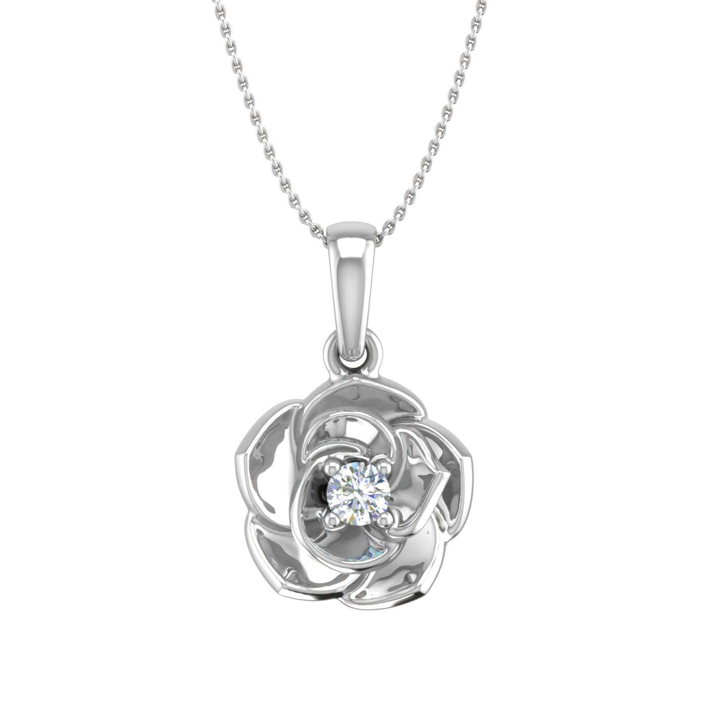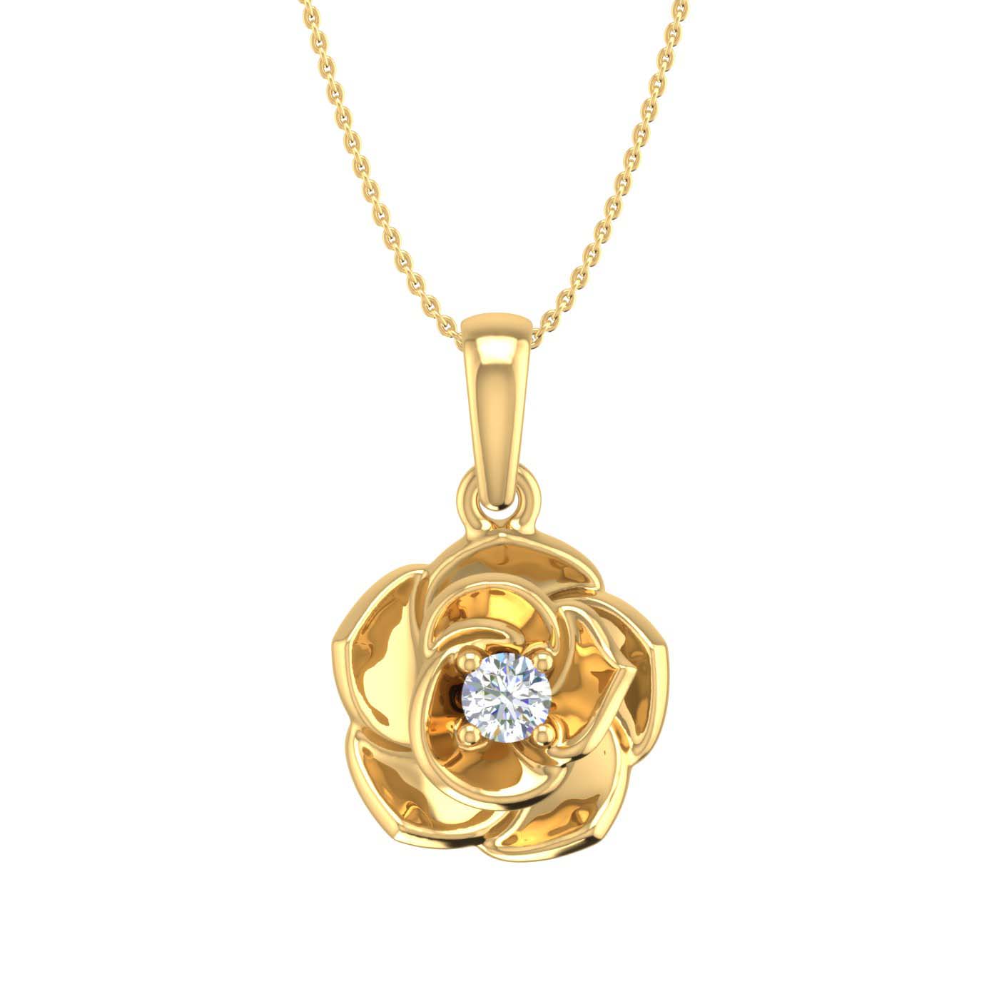 0.05 Carat Diamond Floral Rose Pendant Necklace in Gold (Silver Chain Included) - IGI Certified