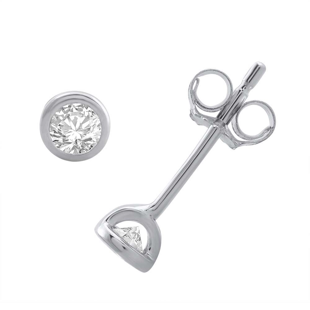 These 0.12 carat bezel set diamond earring are the most loved and popular diamond stud earrings ever. Beautifully forged in 14K gold with 2 sparkling icy white diamonds. The best diamond stud earrings for yourself and your loved one.