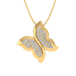 Made in 14K gold this beautiful butterfly pendant necklace is embedded with IGI Certified white diamonds of 0.14 carat weight. Simple yet attractive this butterfly pendant necklace is a remarkable piece of jewelry. It comes with a silver chain.