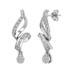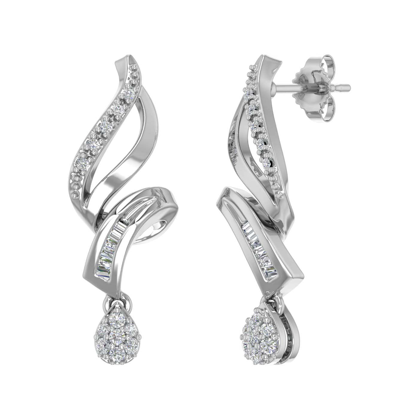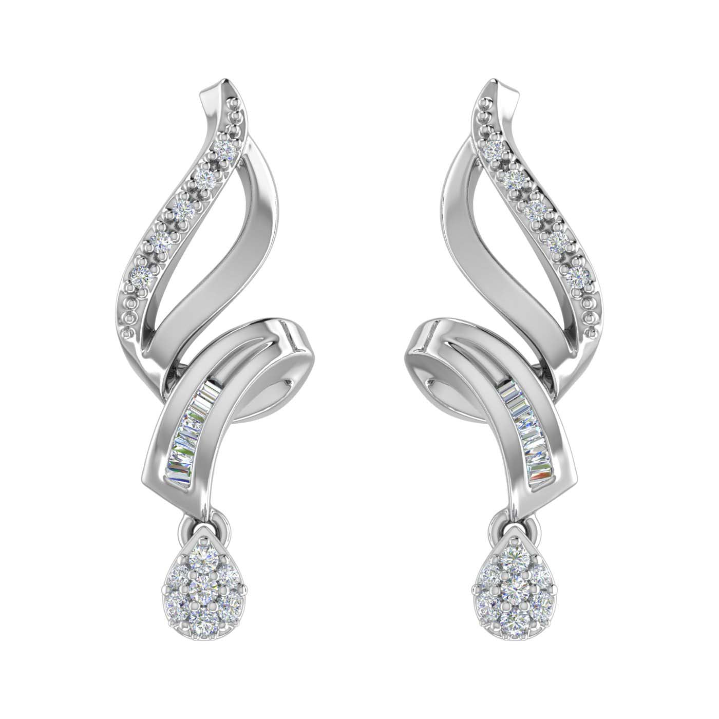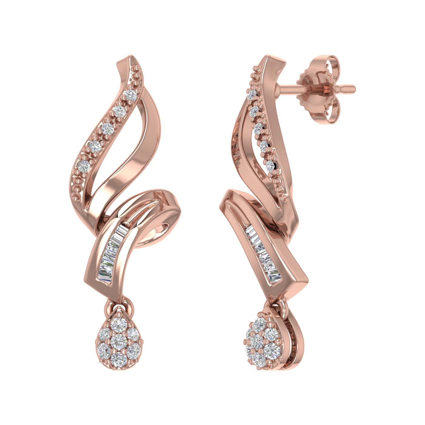 Be it a party or a formal dinner, diamond Drops are the best option of jewelry that can be used. Made in 14K Gold this drop earring are paired with 34 Baguette & Round shape Diamonds and secured with Channel & Prong and weigh 0.15 carat. Add a pinch of simplicity to your look with these diamond drop earrings.