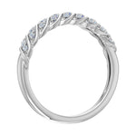 Get ready to be stunned with this majestic diamond wedding band ring. Formed in 14K gold this ring is enhanced with Pave set white diamonds of 0.15 Carat weight and it emits a shine of its own which increase the grandeur of the wearer's outfit.