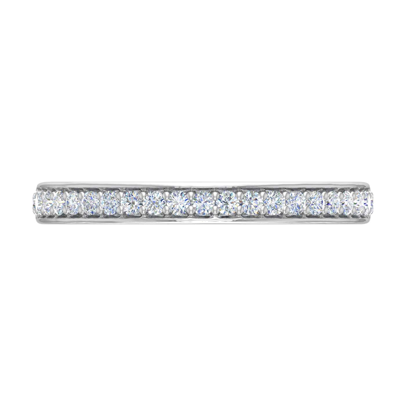 Get ready to be stunned with this majestic diamond wedding band ring. Formed in 14K gold this ring is enhanced with Prong set white diamonds of 0.18 Carat weight and it emits a shine of its own which increase the grandeur of the wearer's outfit.