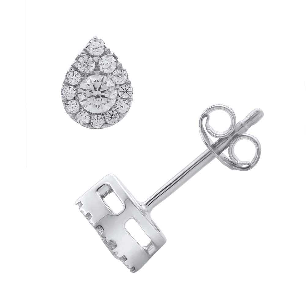 These enchanting teardrop diamond stud earrings are an ideal choice for daily wear ornaments. Made in 14K gold these earrings feature 26 IGI certified diamonds of 0.30 carat weight. Ideal for daily use these stud earrings are beautiful and durable.