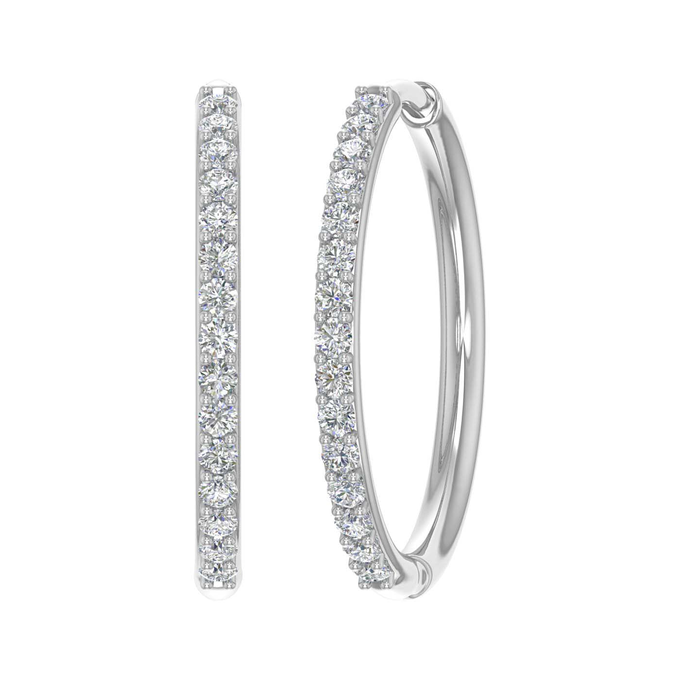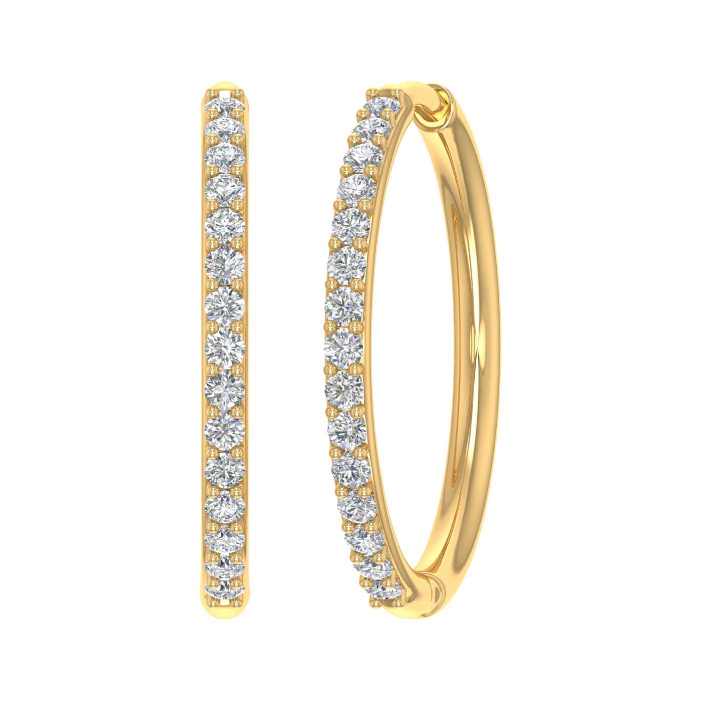 An epitome of grace, this prong-set hoop earrings features with white diamonds of 0.40 carat weight. This pair of earrings is made in 14K gold and it comes along an IGI Certificate for authenticity. This extremely comfortable piece of jewelry can be paired easily for any occasion.