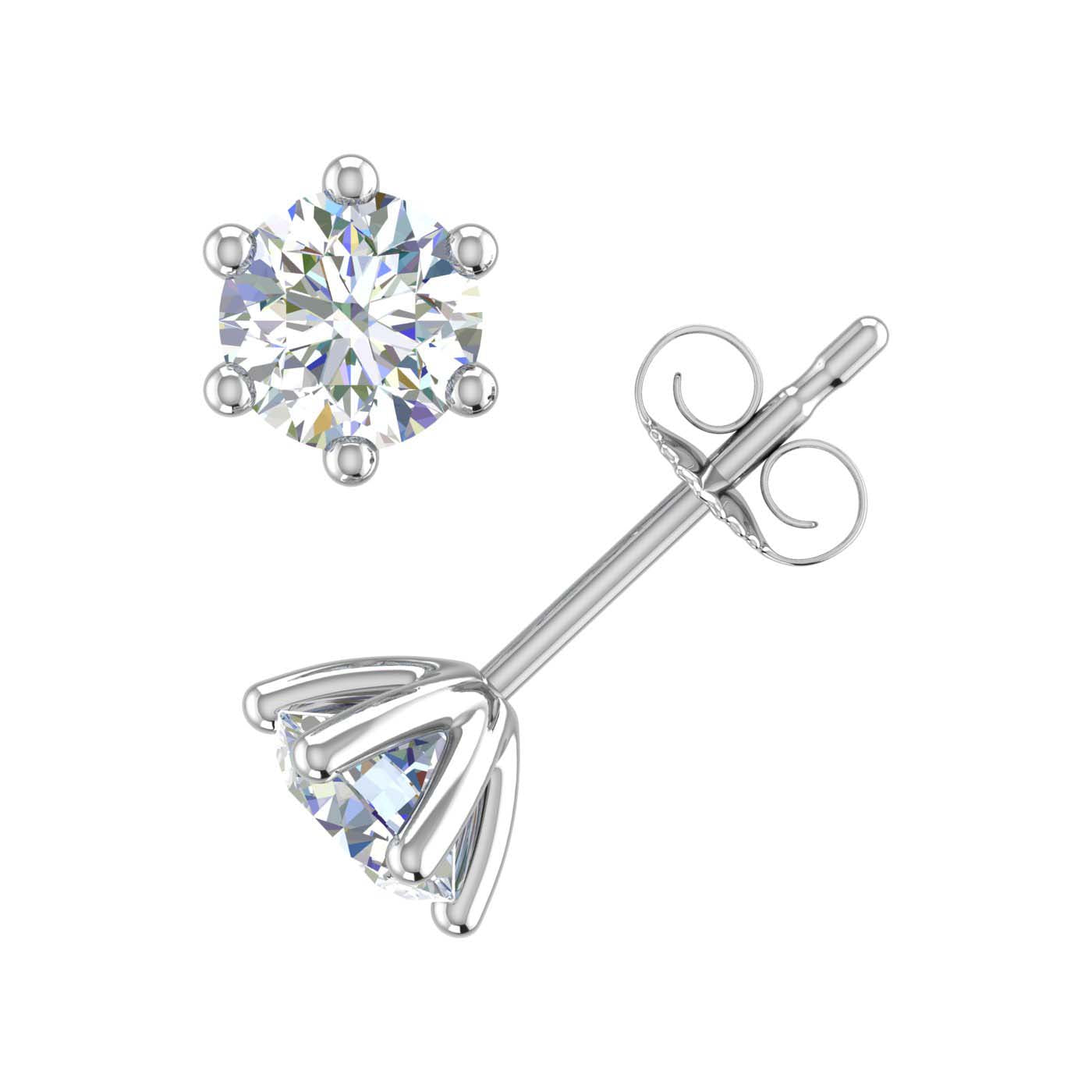 0.60 Carat 6-Prong Diamond Stud Earrings in Gold - IGI Certified