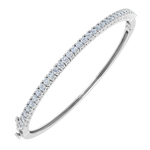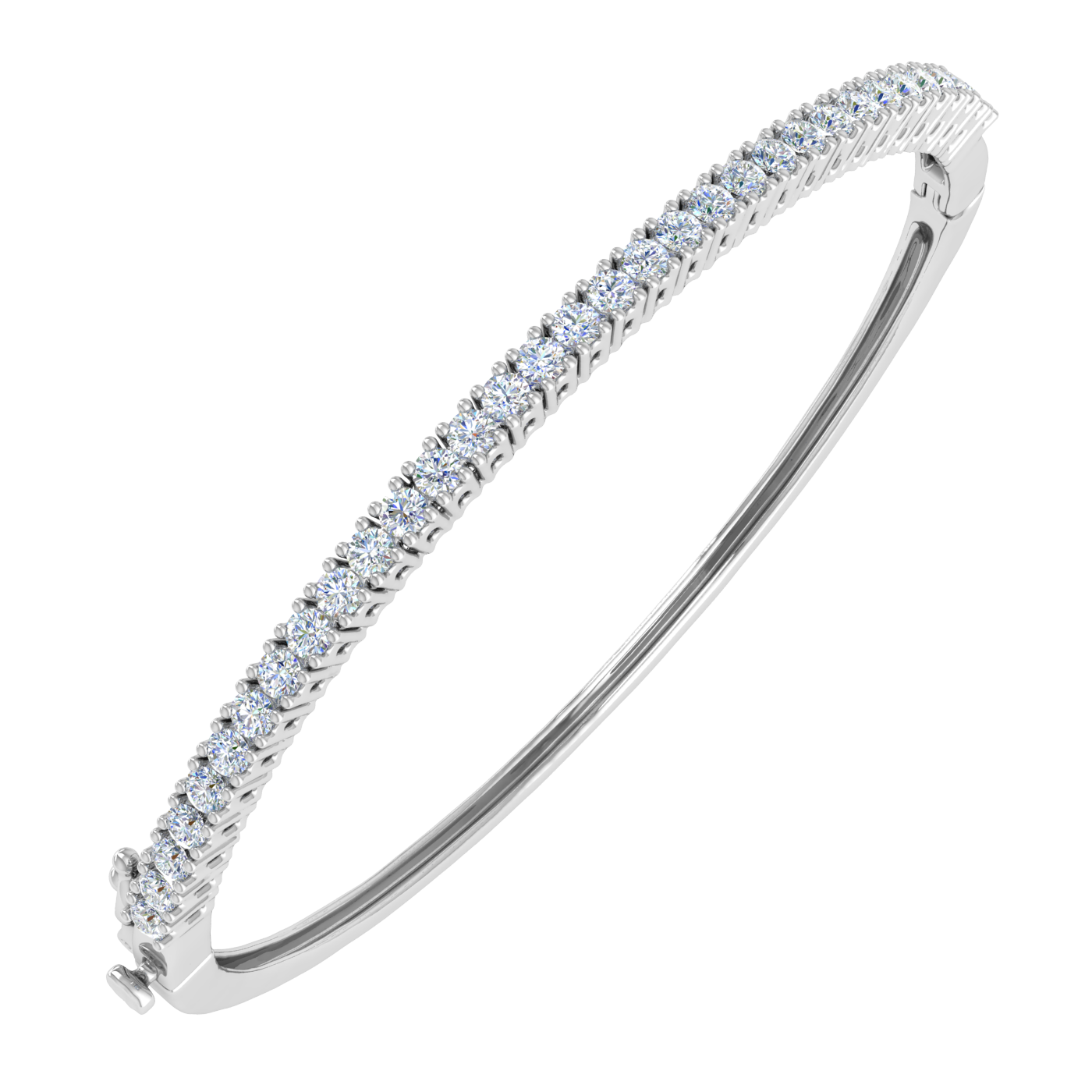 Get ready to be mesmerized with this stunning prong set diamond bangle bracelet which contains diamonds of 1 1/3 carat weight. Made of 14K gold, the sparkling diamonds, give it a flawless shine making it look irressitable. Adult signature required upon delivery.