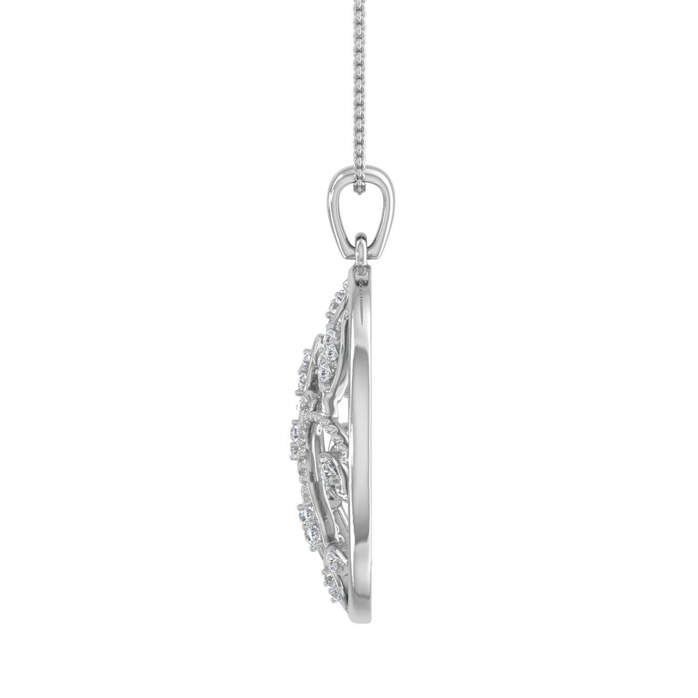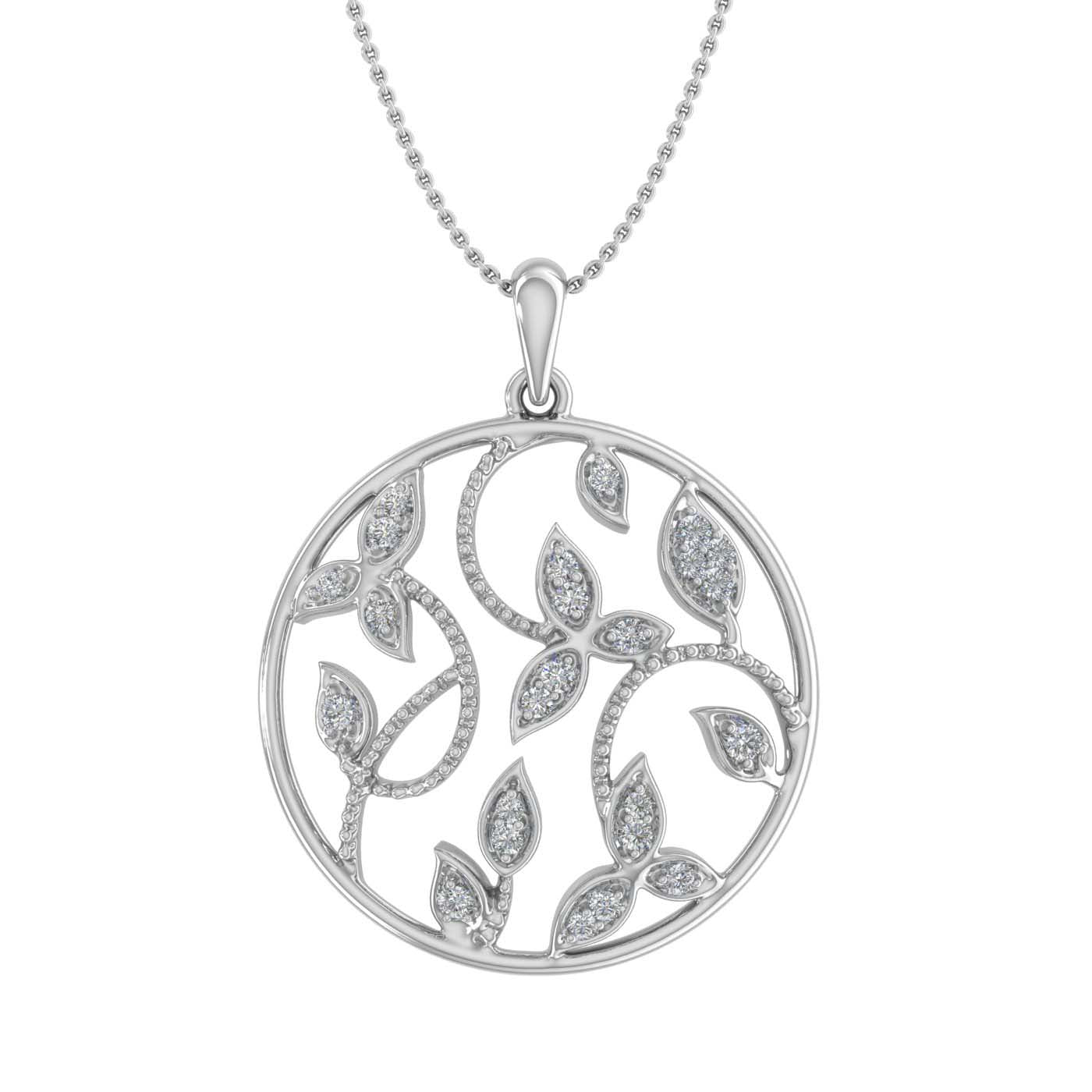 Inspired by nature this beautiful leaf Circle pendant is made in 14K gold with IGI Certified white diamonds of 1/10 Carat weight. Simple and alluring this pendant is unique in its own way. This pendant comes dangling with a beautiful silver chain.