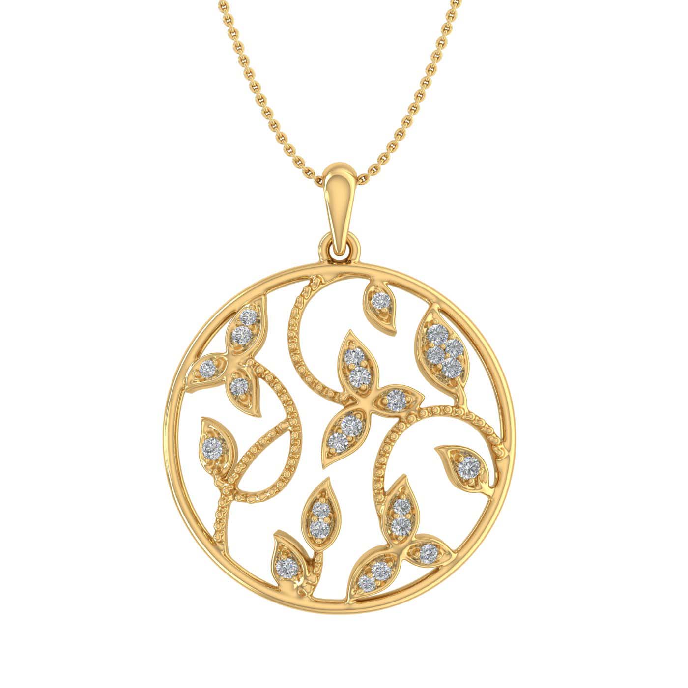 1/10 Carat Diamond Leaf Circle Pendant Necklace in Gold (Included Silver Chain)
