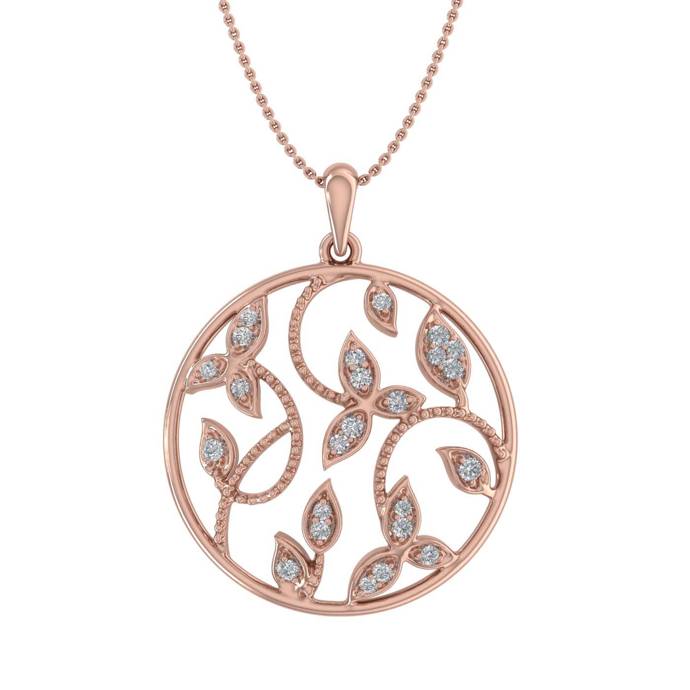 1/10 Carat Diamond Leaf Circle Pendant Necklace in Gold (Included Silver Chain) - IGI Certified