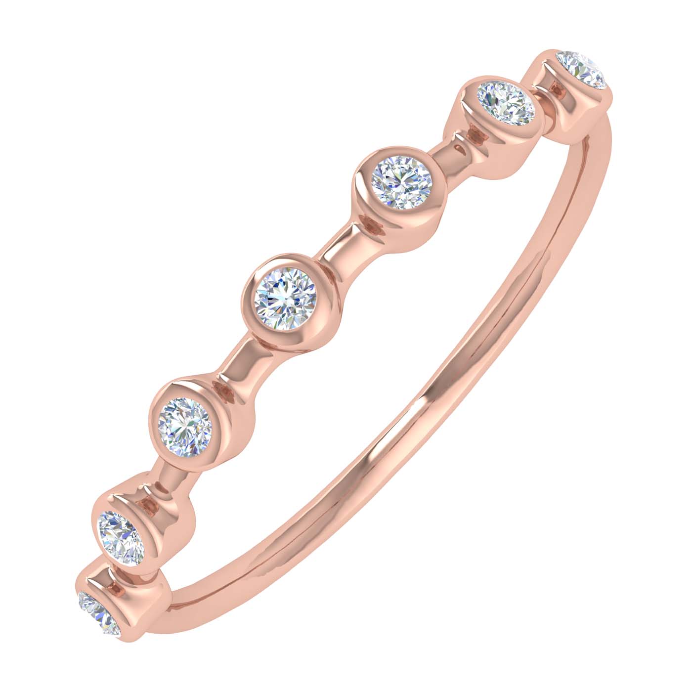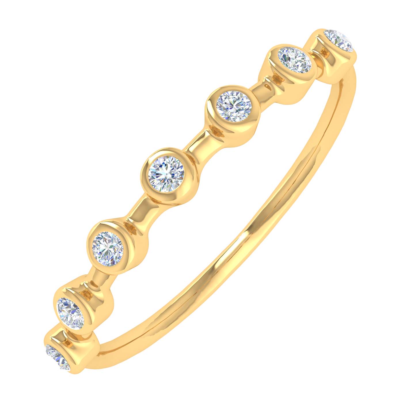 Get ready to be stunned with this majestic diamond wedding band ring. Formed in 14K Gold this ring is enhanced with Bezel set white diamonds of 1/10 Carat weight and it emits a shine of its own which increase the grandeur of the wearer's outfit.