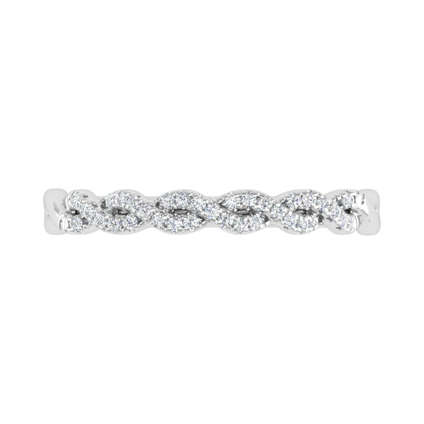A beautiful twisted wedding band ring is the most perfect diamond jewelry for celebrating your special day. It is precisely crafted in 14k gold and embedded with 35 IGI certified icy white diamonds of 0.10 carat weight. This piece of jewelry will be cherished by your loved one for eternity.
