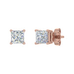 1/2 Carat 4-Prong Set Princess Cut Diamond Stud Earrings in Gold