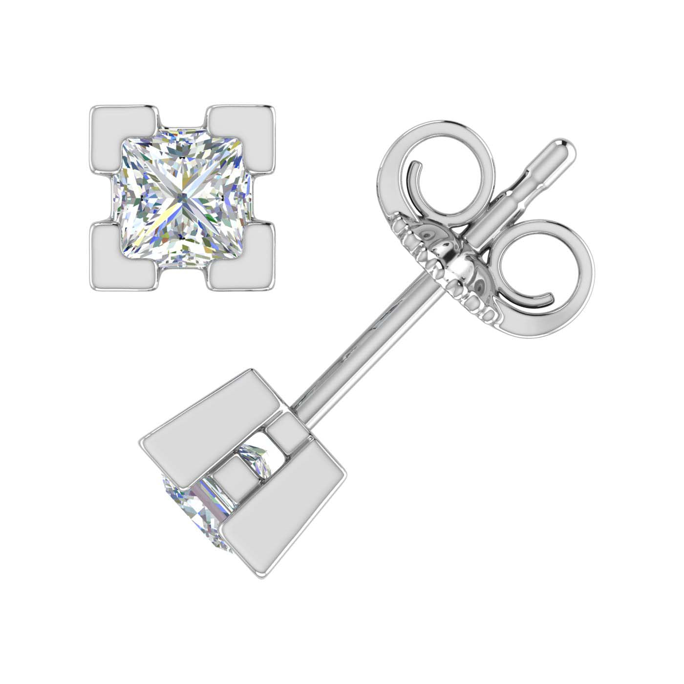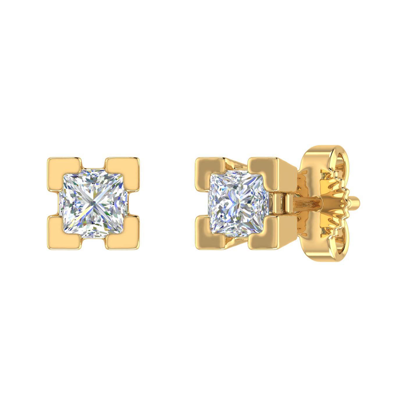 1/2 Carat 4-Prong Set Princess Cut Diamond Stud Earrings in Gold