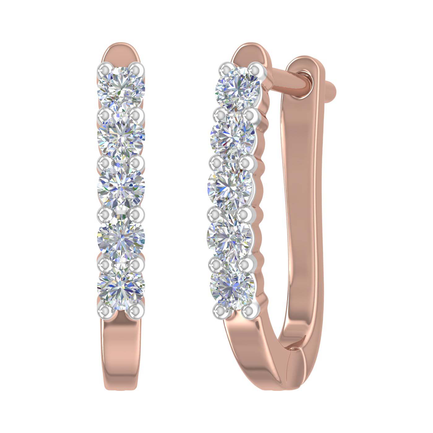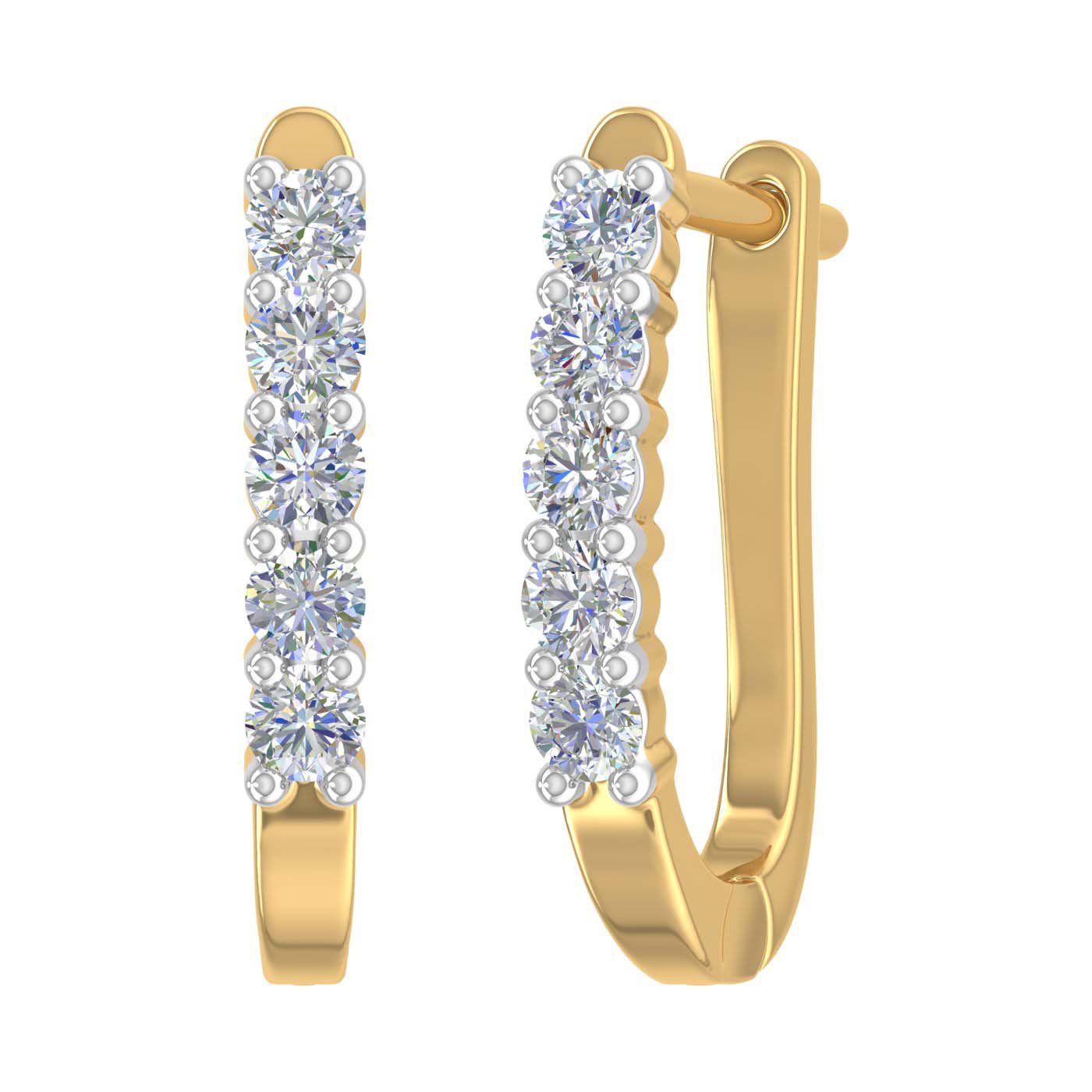 1/2 Carat 5-Stones Diamond Hoop Earrings in Gold - IGI Certified