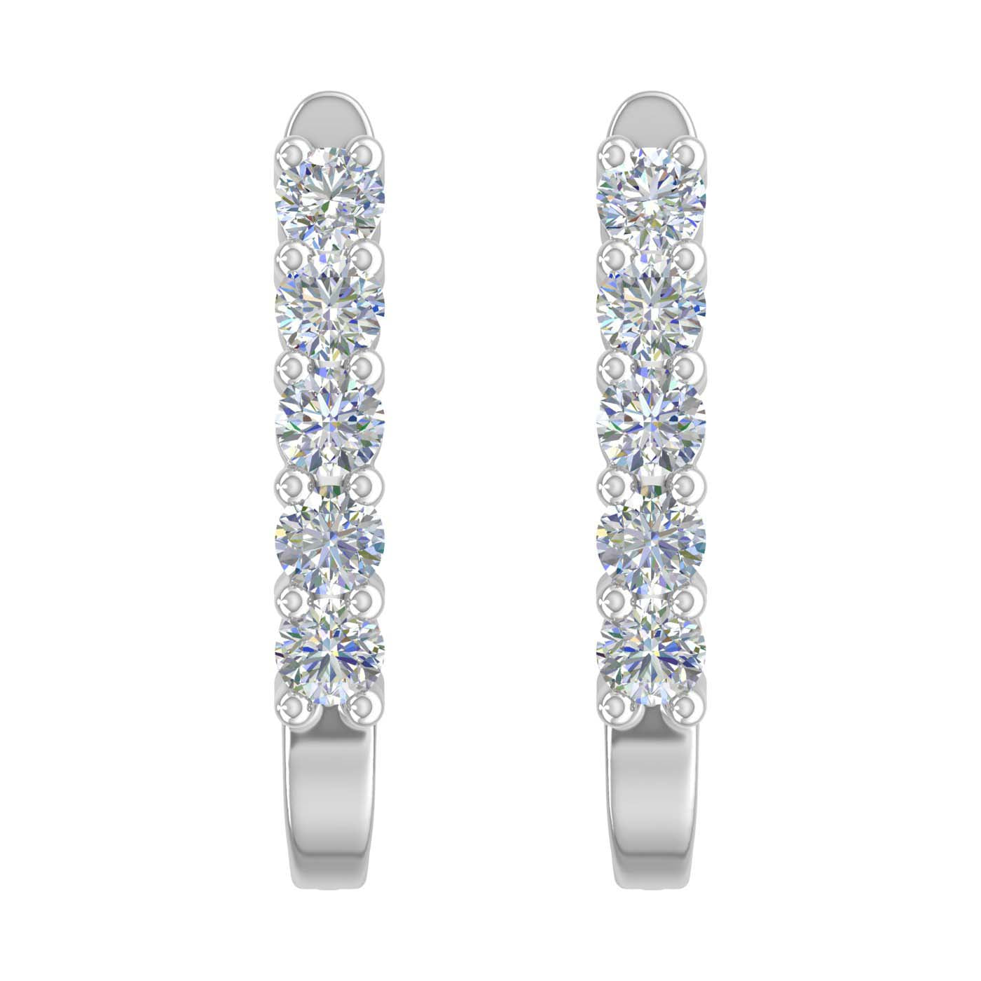 Your search for the perfect hoop earrings ends here. This prong set hoop earrings is set in 14K gold and embedded with 5 IGI certified 1/2 carat icy white round diamond in a perfect curve. Simple yet elegant this beautiful pair of hoop earrings is a must have piece of jewelry for every women.