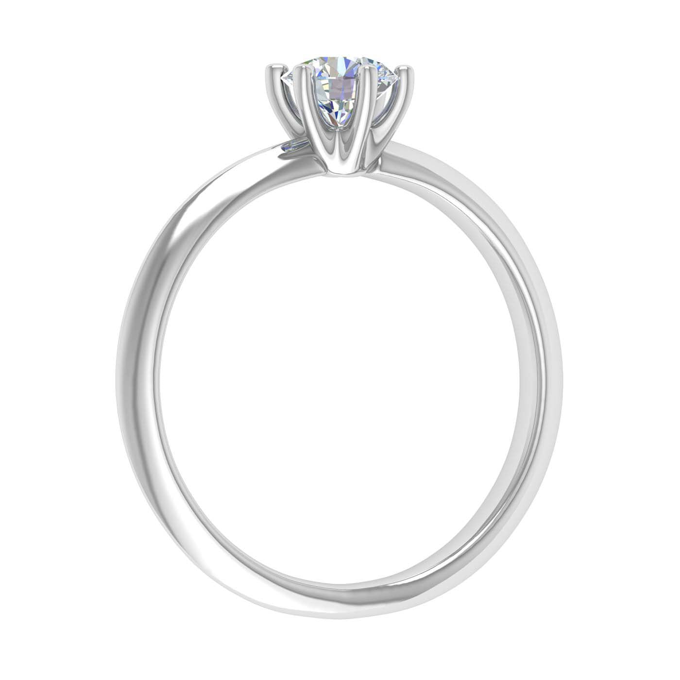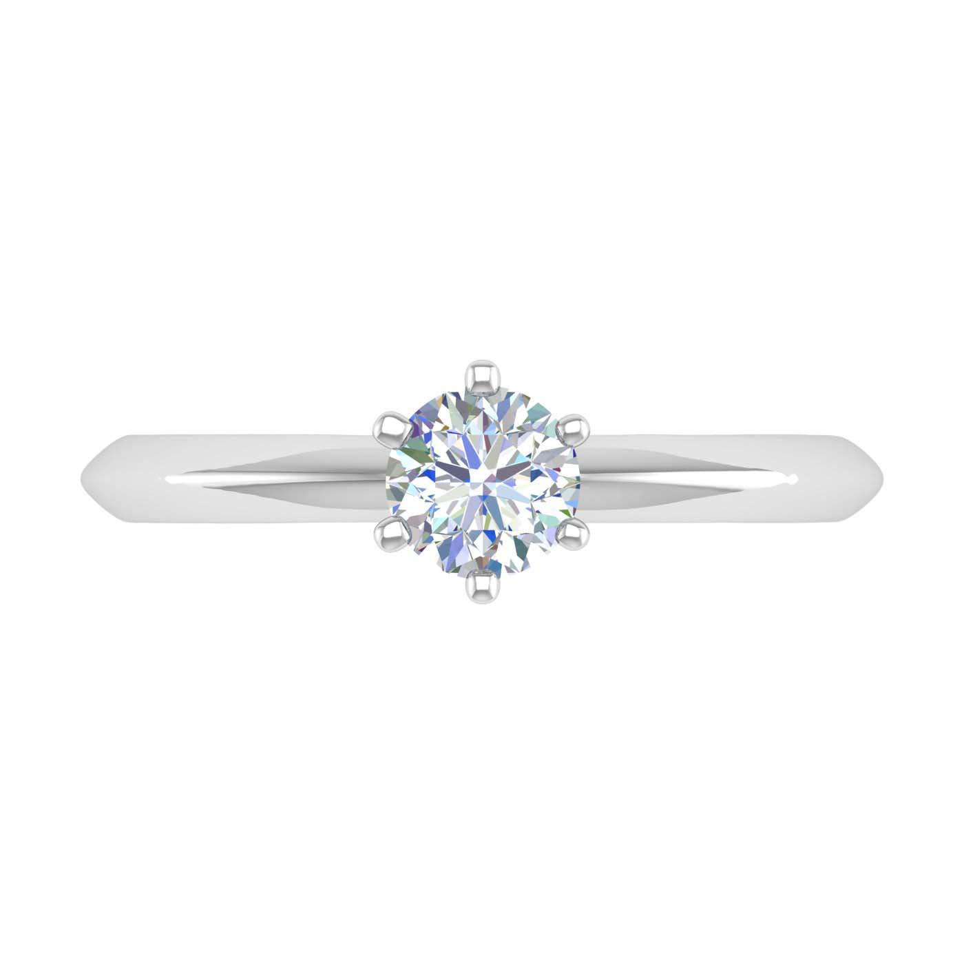 This beautiful 6 prong diamond solitaire engagement ring is the most perfect diamond jewelry for celebrating one of the most special dates in your life with your loved one. It is rendered beautifully in lustrous 14K gold with sparkling icy white diamonds of 1/2 carat weight which is set in such a way that it enhances the beauty of the ring.