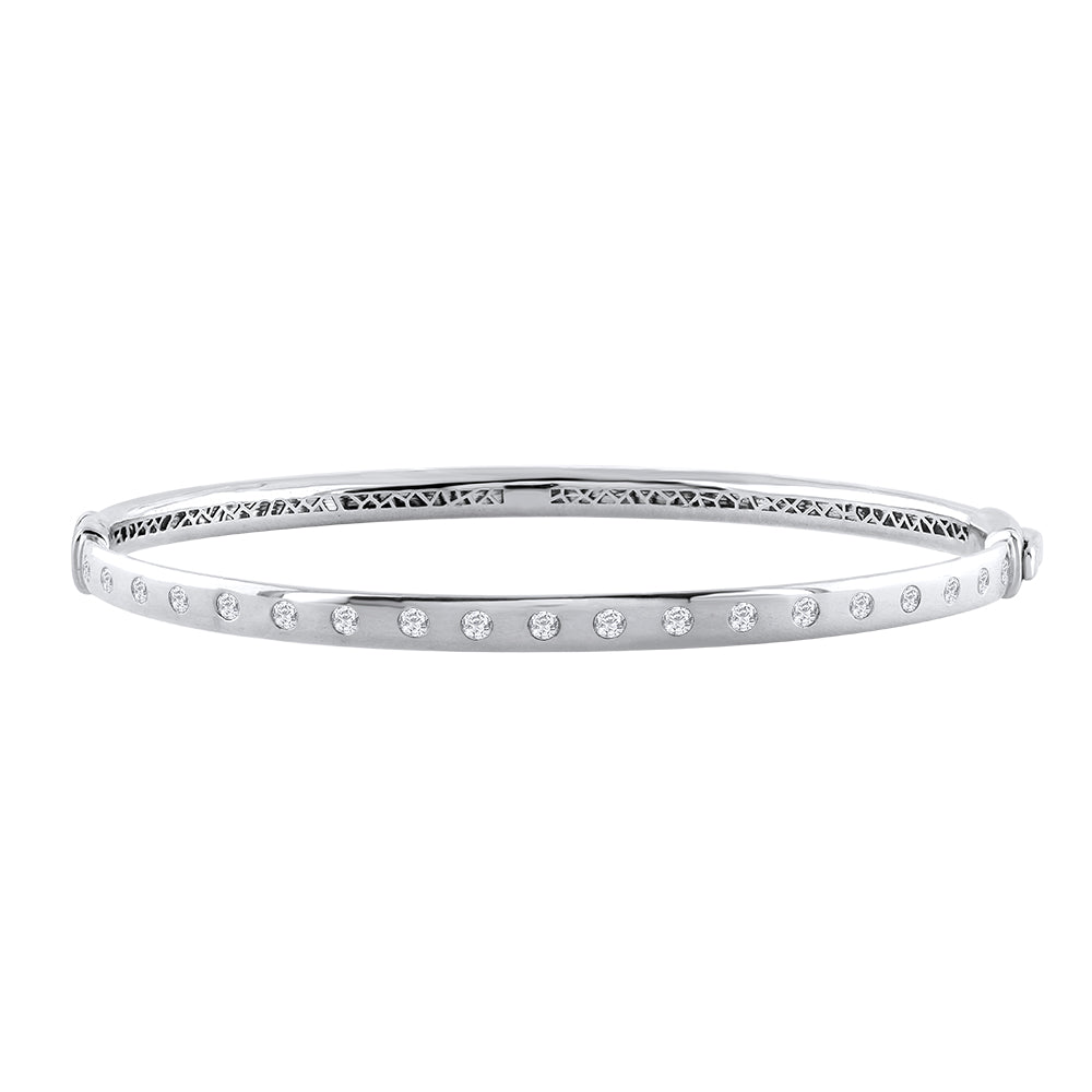 Get ready to be mesmerized with this stunning bezel set diamond bangle bracelet which contains diamonds of 1/2 carat weight. Made of 14K Gold, the sparkling diamonds, give it a flawless shine making it look irresistible. Adult signature required upon delivery.