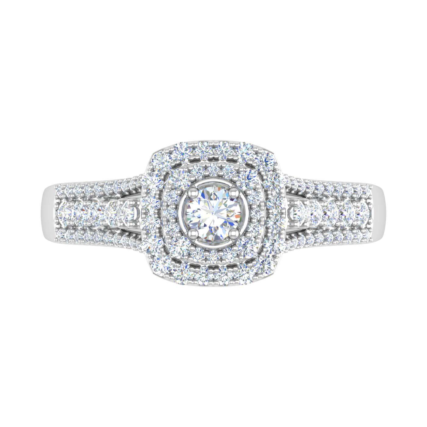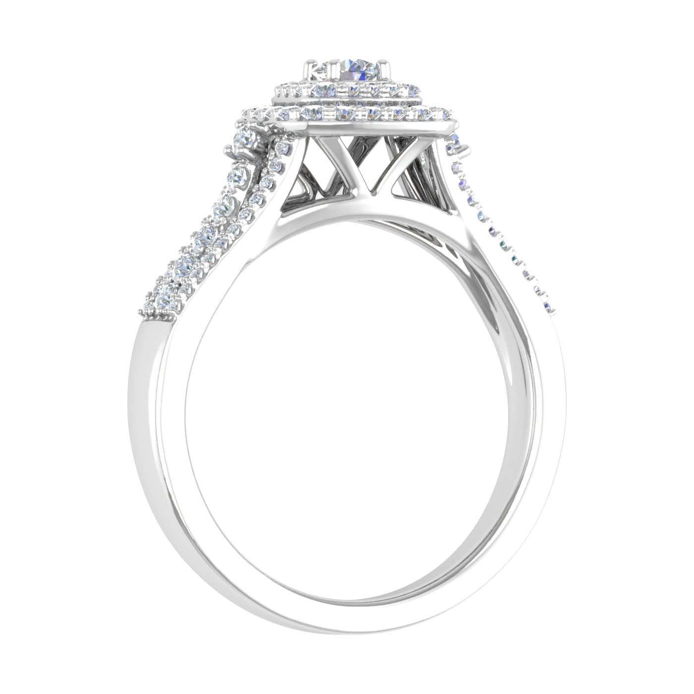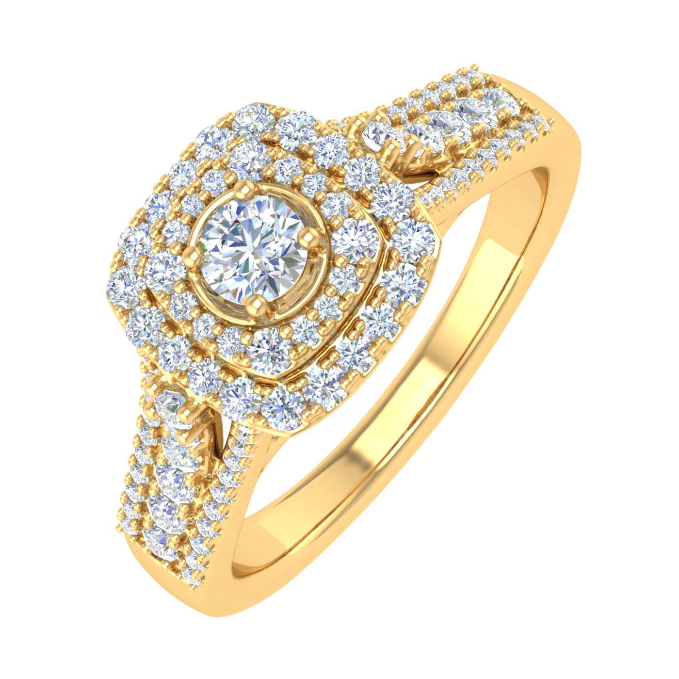 This quintessential piece of jewelry is the best for making your special day even more special. Set in 14K gold this beautiful double halo cushion shaped engagement ring features IGI Certified 93 white round diamonds of 1/2 carat weight perfectly set in a prong setting to increase the beauty of this ring. Make her feel special on this memorable day of yours.