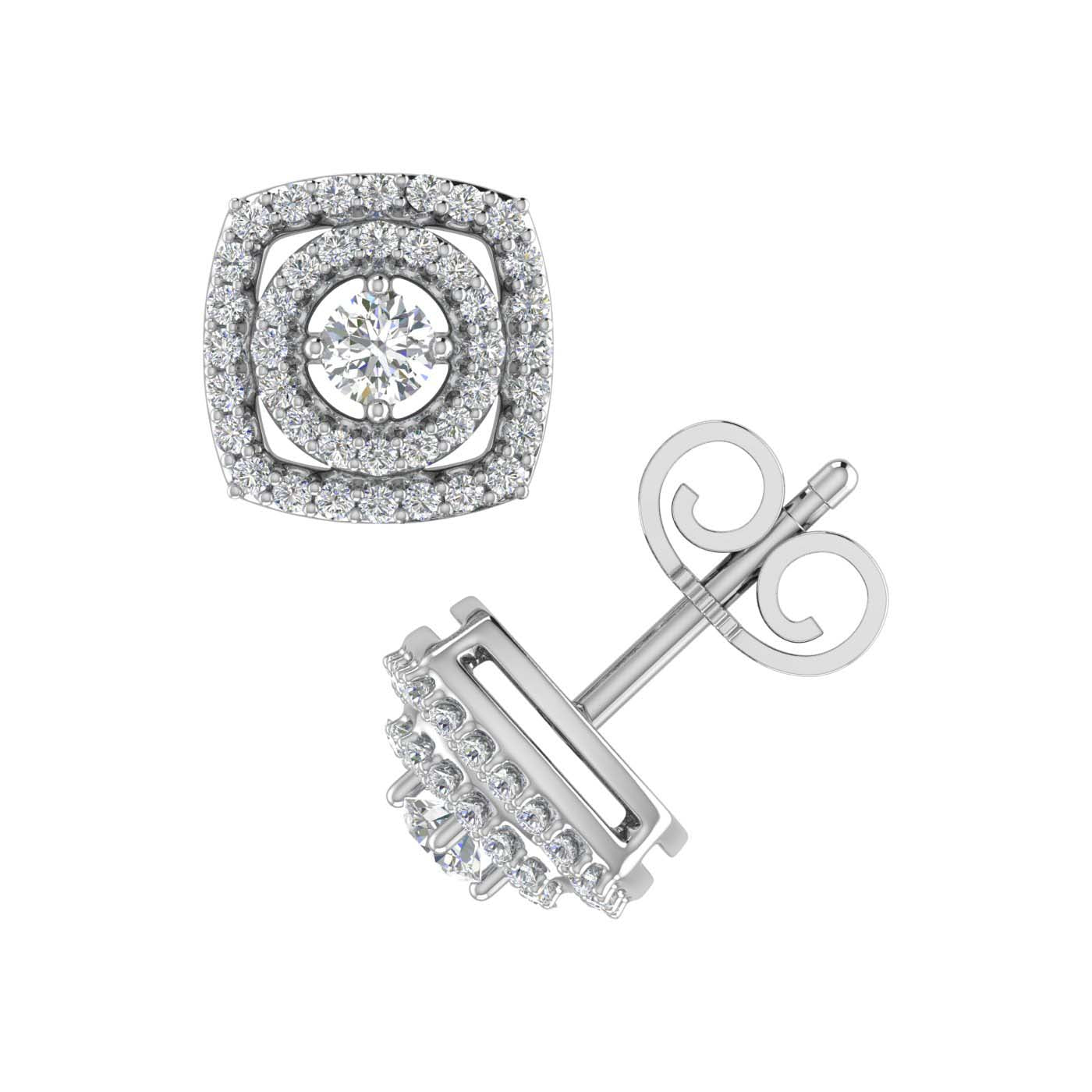 These amazing 1/2 carat cushion-shaped round diamond stud earrings are made in 14K gold. This unique piece of jewelry shouldn't be left. Featuring natural white diamonds that are IGI Certified, this prong set beautiful stud earring is surely going to get freshness to your collection.