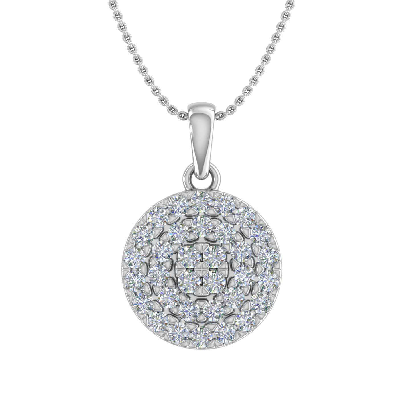 1/2 Carat Diamond Circle Halo Pendant Necklace in Gold (Silver Cable Chain) - IGI Certified