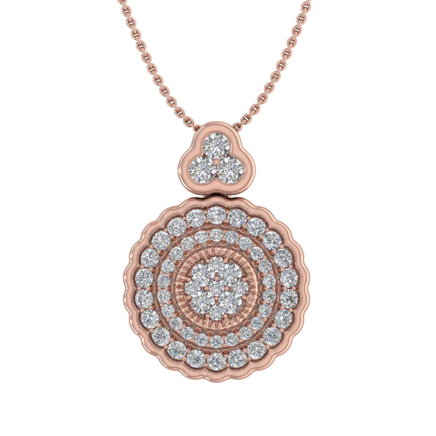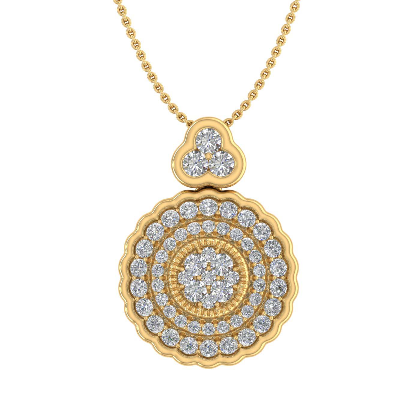 This amazing circle pendant necklace, sparkles beautifully from every angle, it is made in 14K gold and studded with dazzling diamonds of 1/2 carat weight. This fantastic pendant will definitely make her fall for it. It is suspended from lovely silver chain.