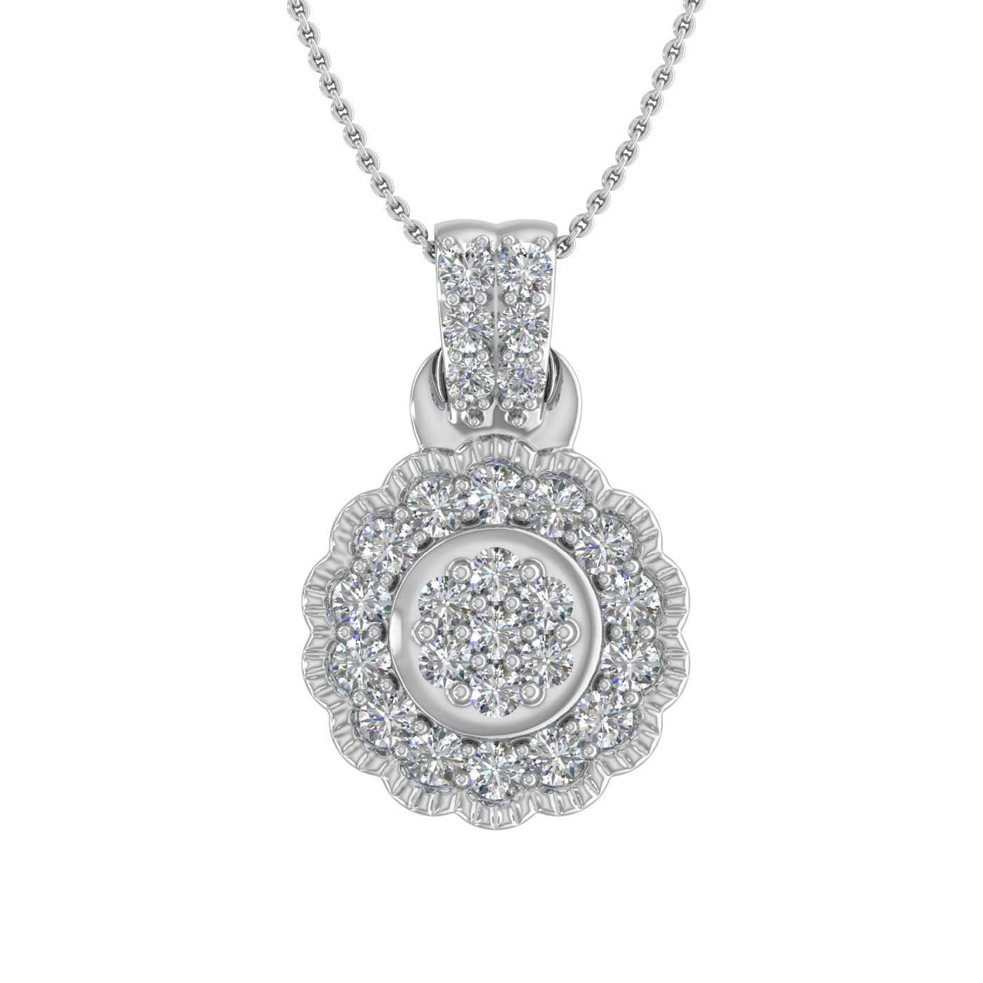 1/2 Carat Diamond Cluster Pendant Necklace in Gold (Silver Chain Included)