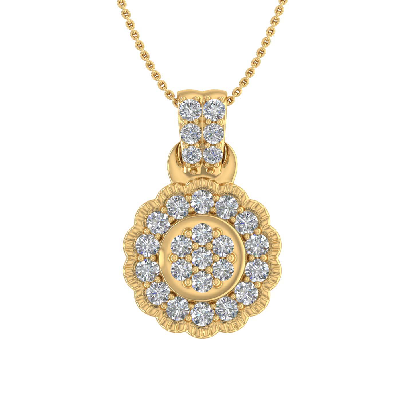Bestowed with IGI Certified prong & pave set diamonds of 1/2 carat weight, this cluster pendant necklace is made in 14K gold. Cluster pendants are the best gift you can give to someone as they are always in trend. It comes with silver chain.