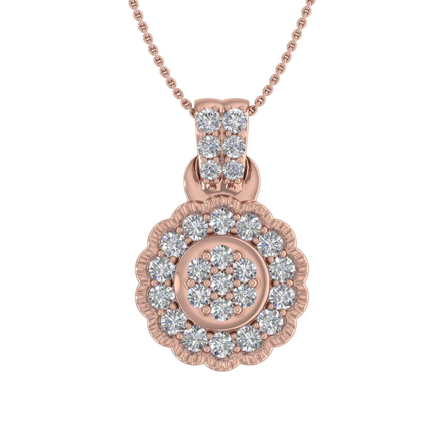 Bestowed with IGI Certified prong & pave set diamonds of 1/2 carat weight, this cluster pendant necklace is made in 14K gold. Cluster pendants are the best gift you can give to someone as they are always in trend. It comes with silver chain.