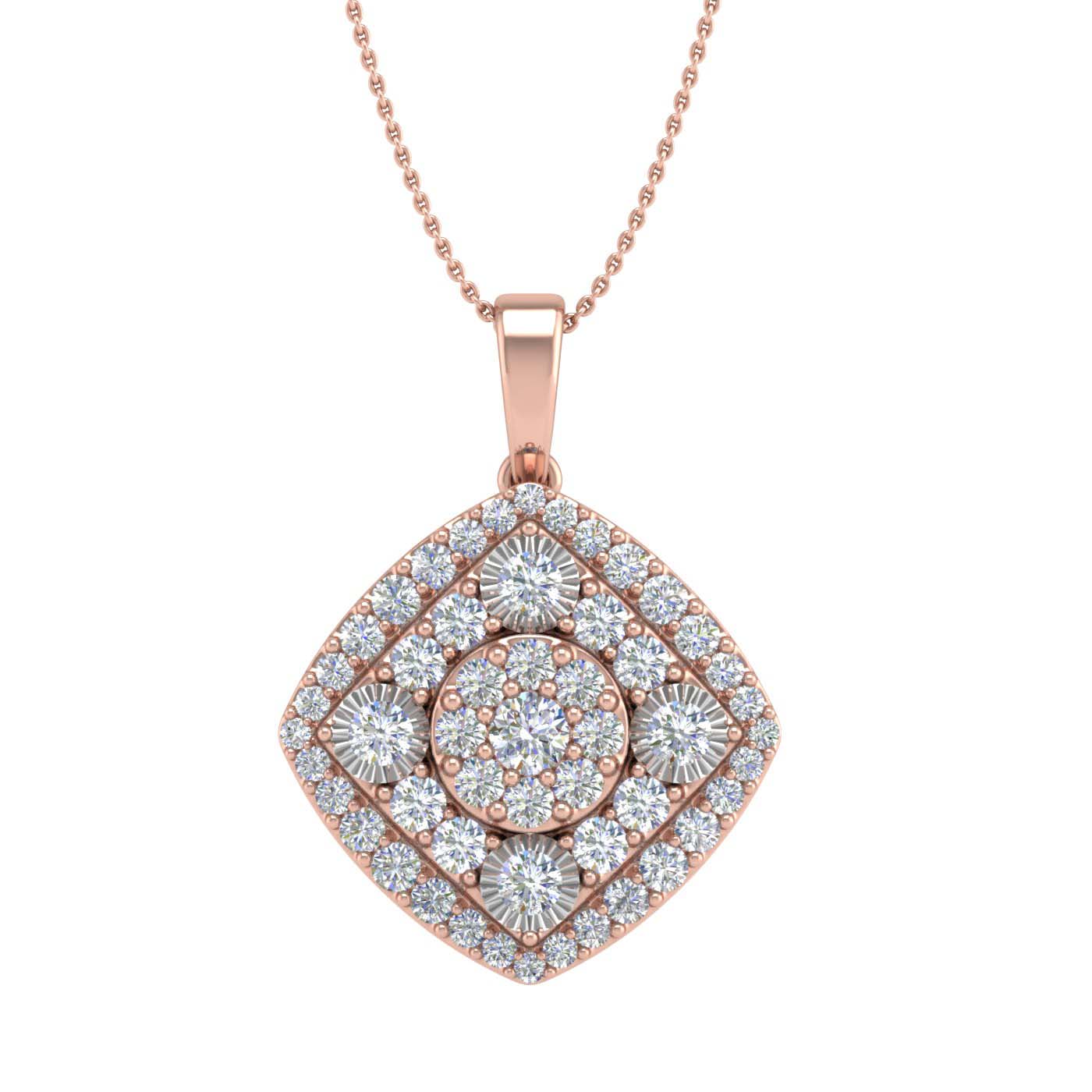 Bestowed with prong set white diamonds of 1/2 carat weight, this cluster pendant necklace is made in 14K gold. Cluster pendants are the best gift you can give to someone as they are always in trend. It comes with silver chain.