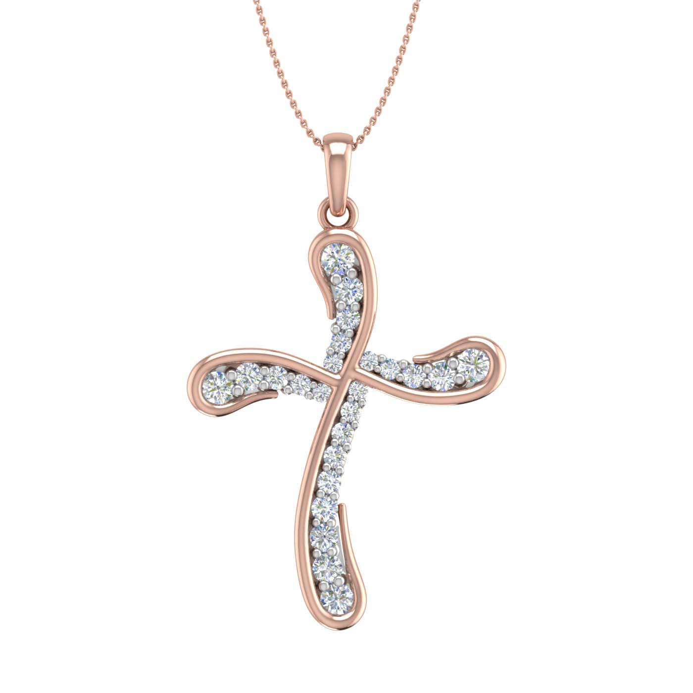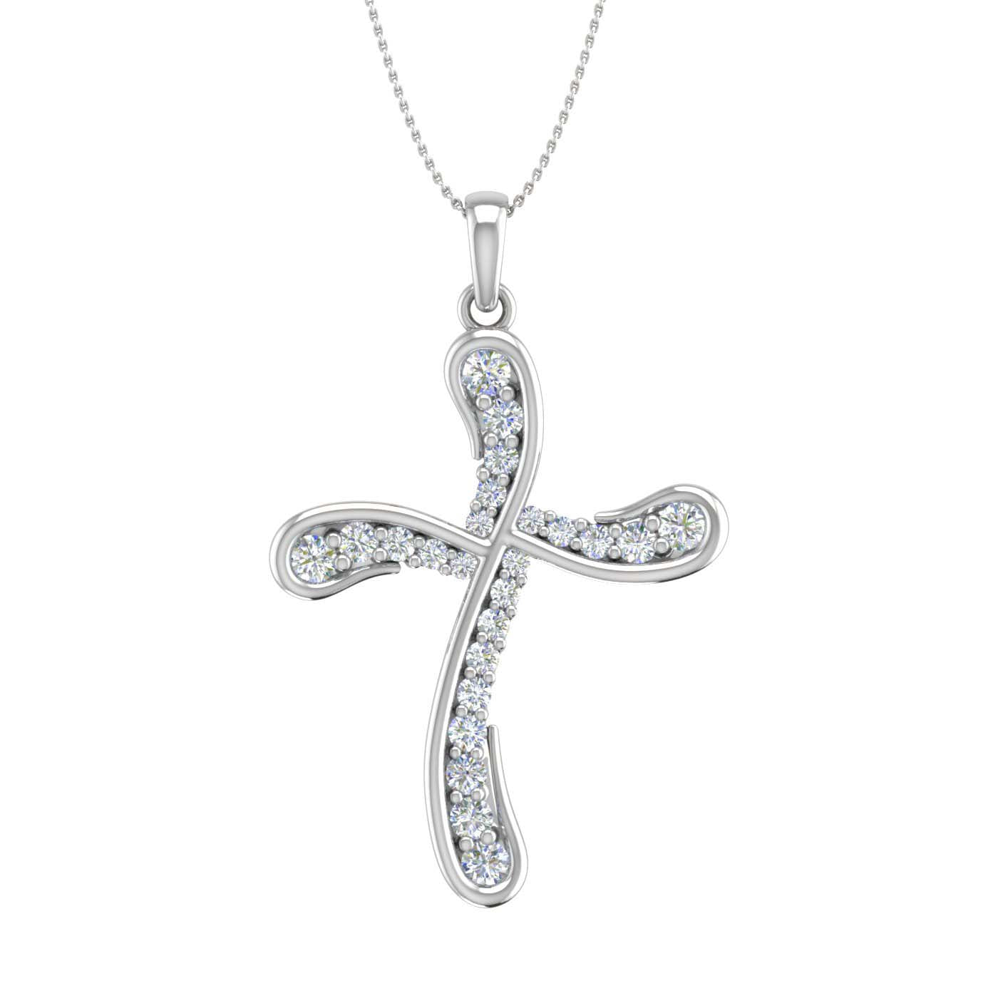 1/2 Carat Diamond Cross Pendant Necklace in Gold (Silver Chain Included) - IGI Certified