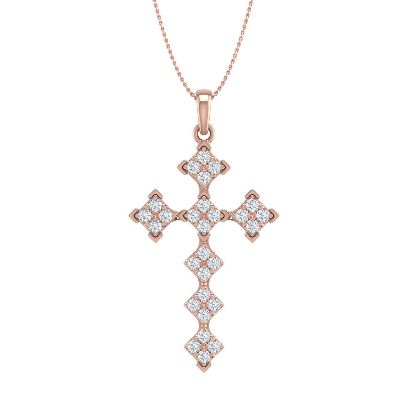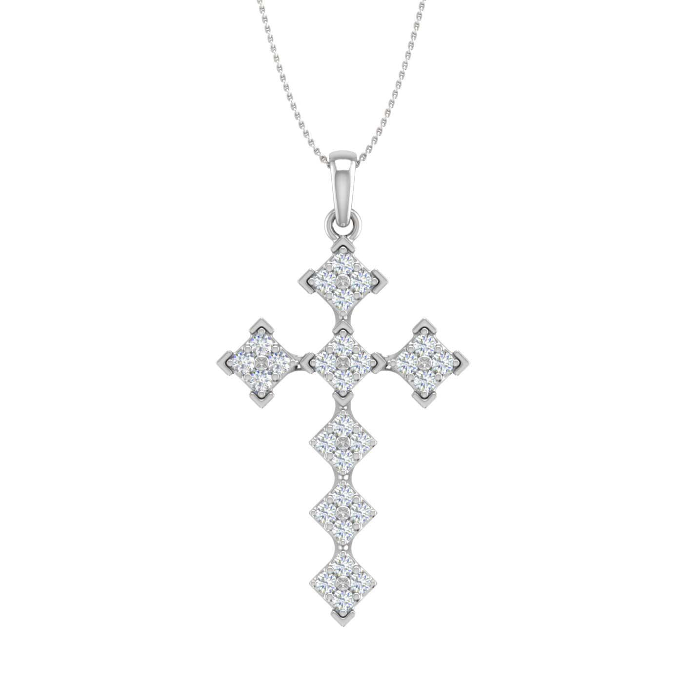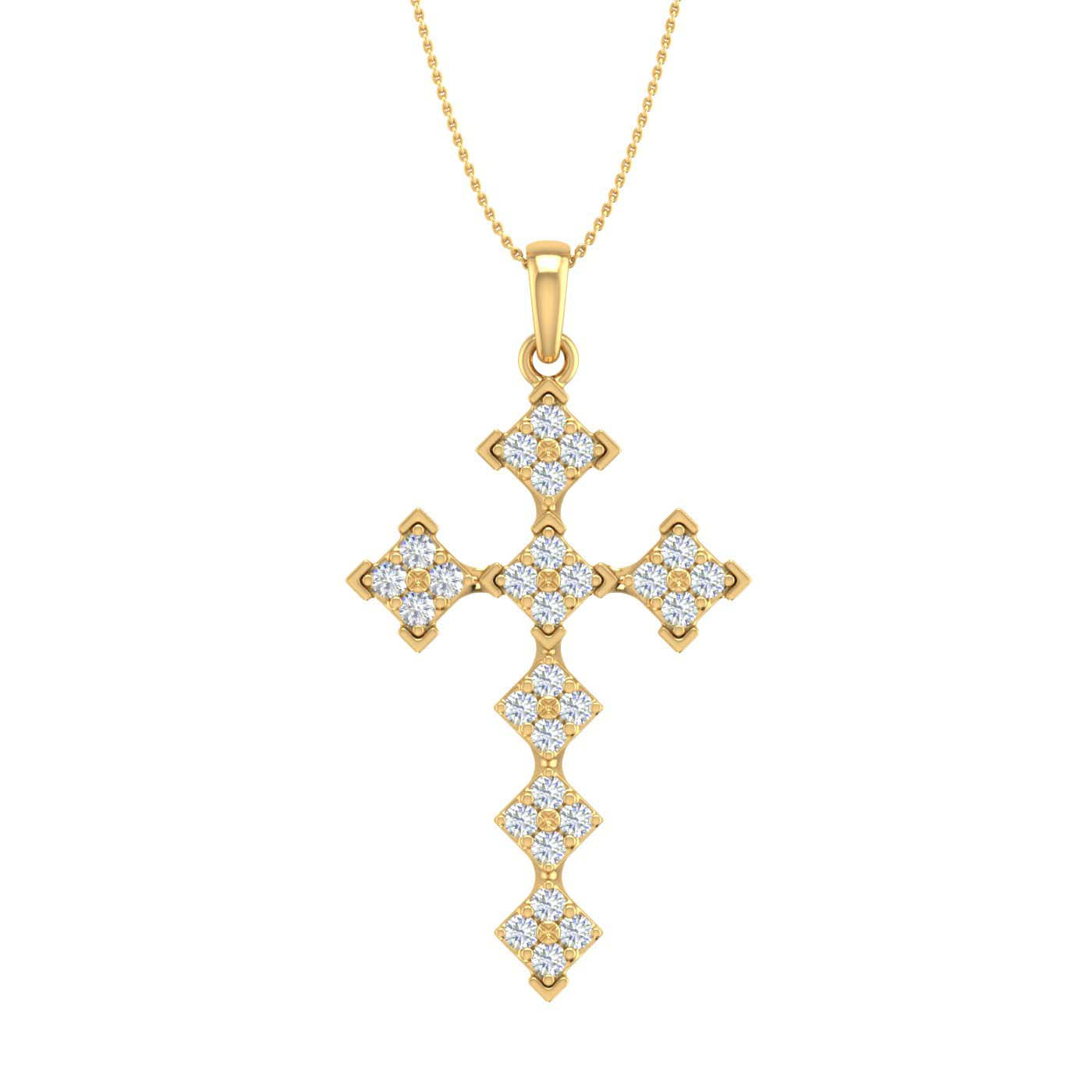 1/2 Carat Diamond Cross Pendant Necklace in Gold (Silver Chain Included) - IGI Certified