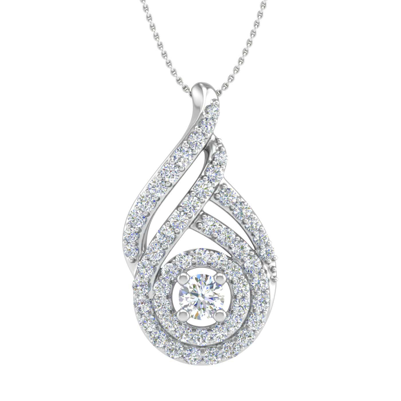 This glamorous and gorgeous Drop diamond pendant is beautifully set in lustrous 14K gold with sparkling white diamonds of 1/2 carat weight. The beautiful design and craftsmanship make this diamond pendant beautiful, this pendant necklace dangles charmingly with a very stylish look.It is suspended from lovely silver chain.