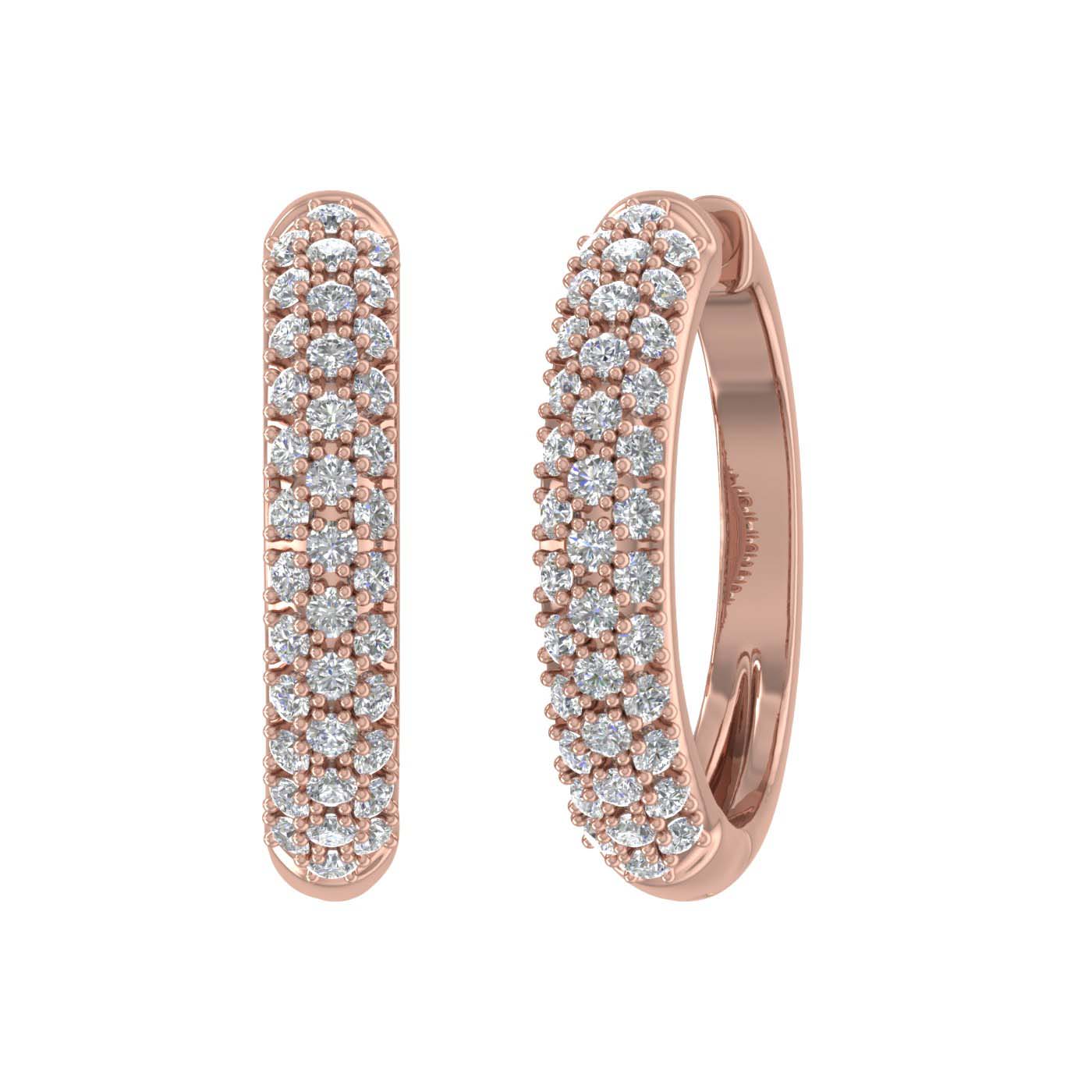 A symbol of elegance, this prong set hoop earrings feature with white diamonds of 1/2 carat weight that are IGI Certified. This pair of earrings is made in 14K gold, And it is an extremely comfortable piece of jewelry to be used for parties as well as daily wear.