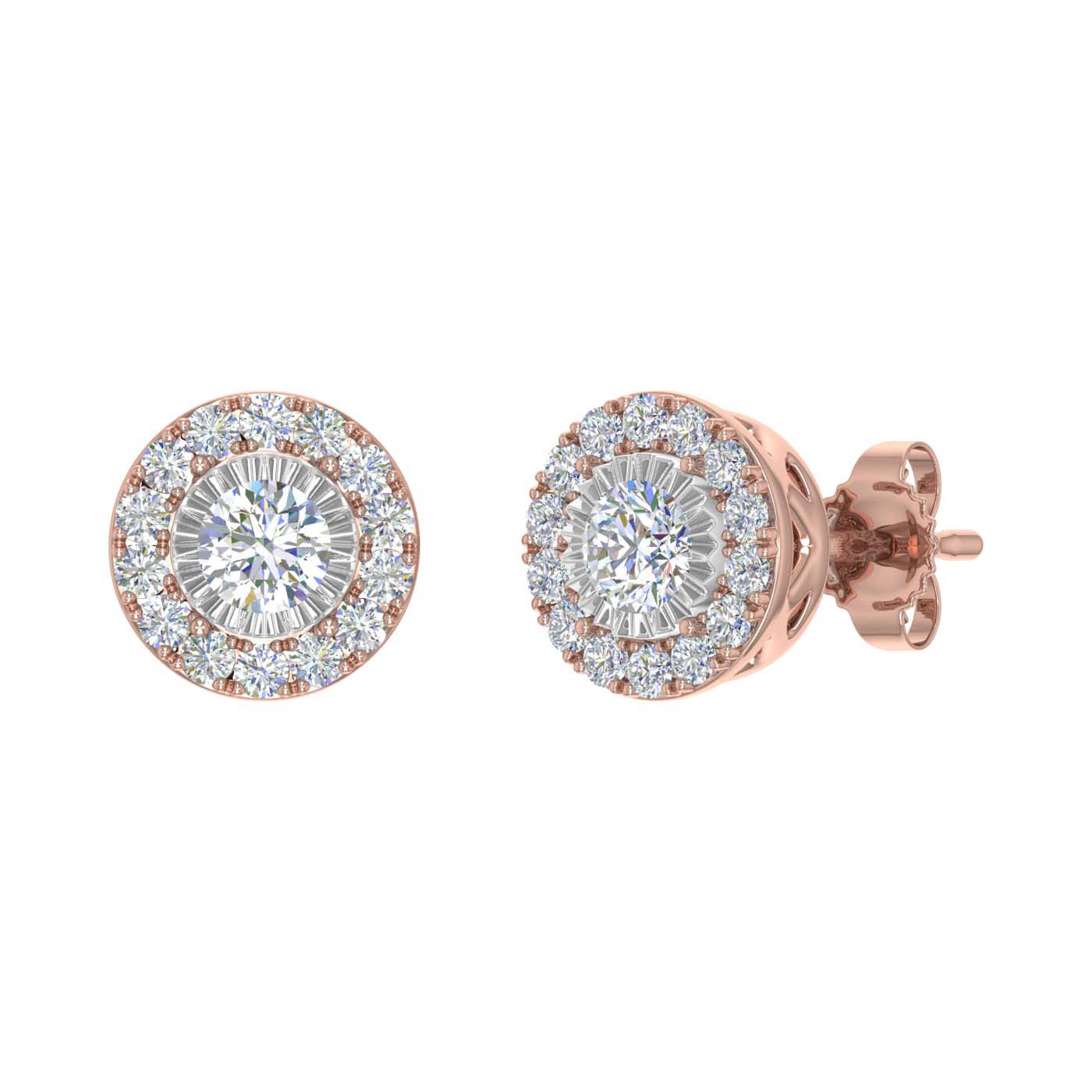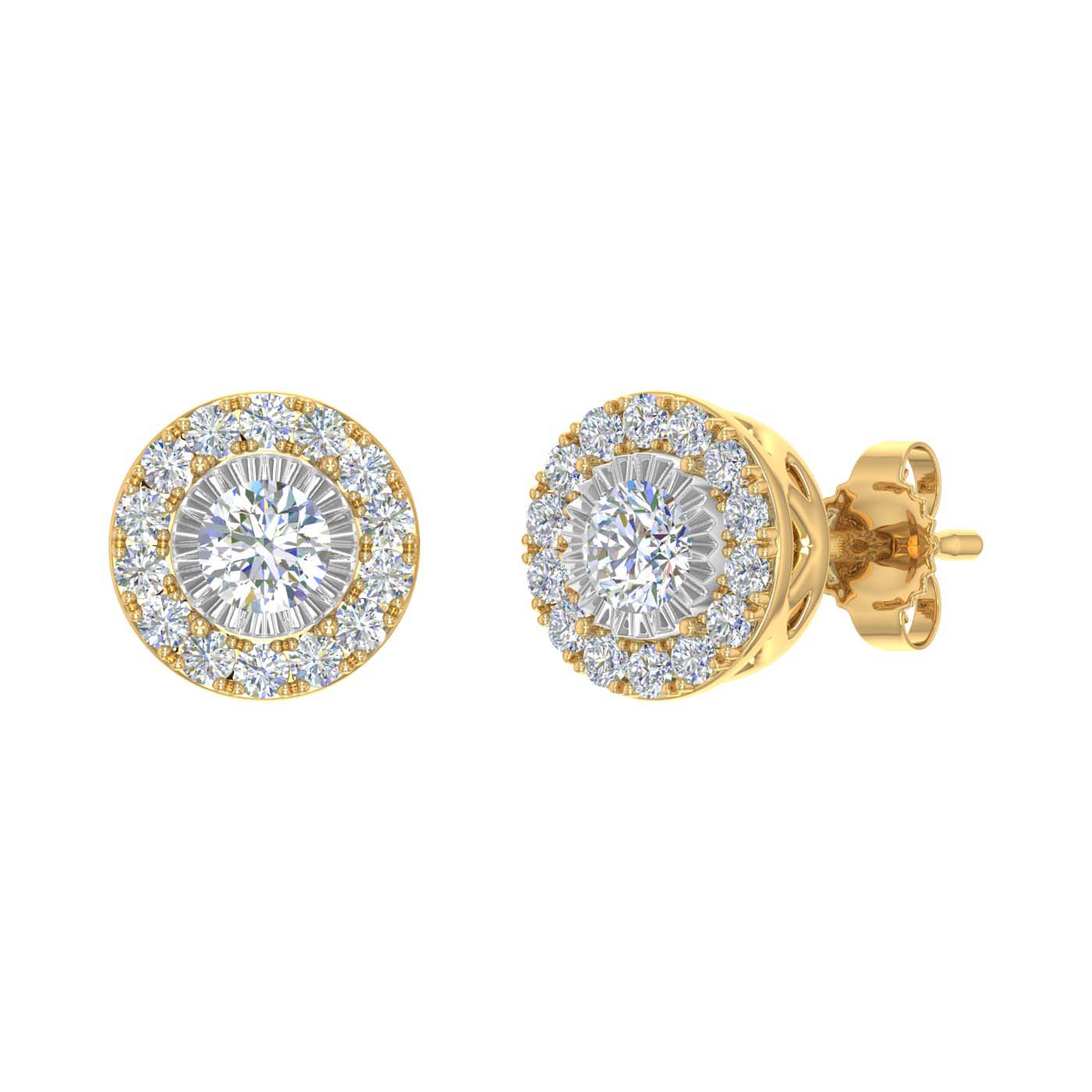 1/2 Carat Halo Diamond Stud Earrings in Gold