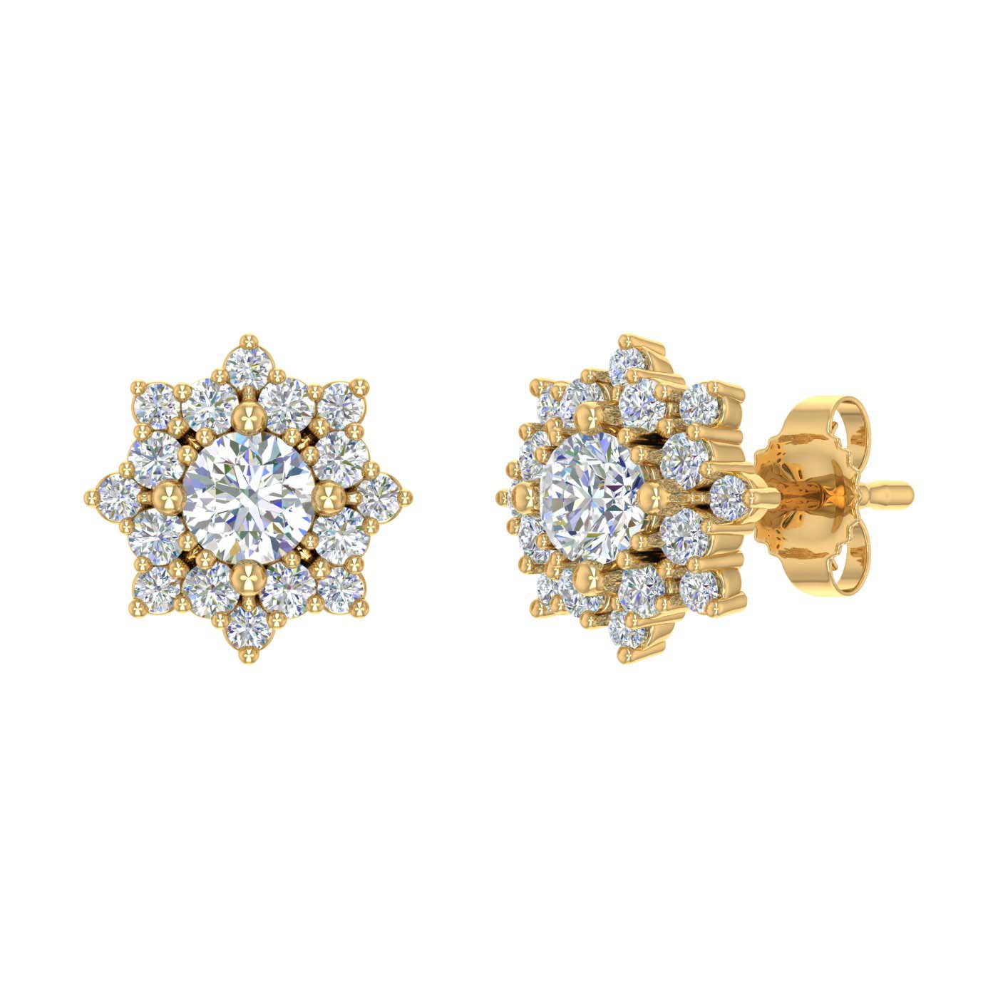These gorgeous 1/2 carat round diamond halo stud earrings are made in 14K gold. This enchanting piece of jewelry shouldn't be left. Featuring natural white diamonds that are IGI Certified, this prong set beautiful stud earring is surely going to get freshness to your collection.