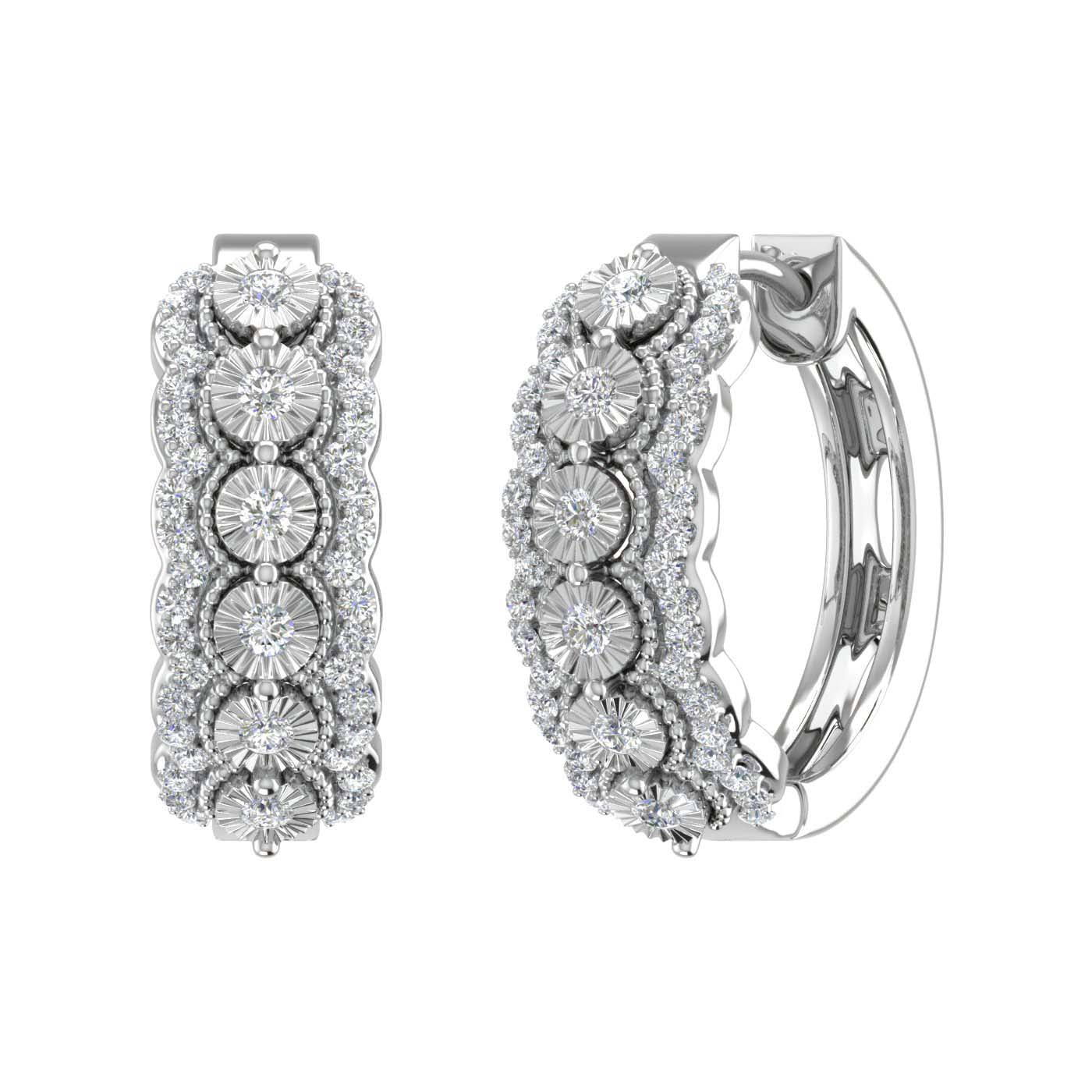 1/2 Carat Round Diamond Hoop Earrings in Gold - IGI Certified