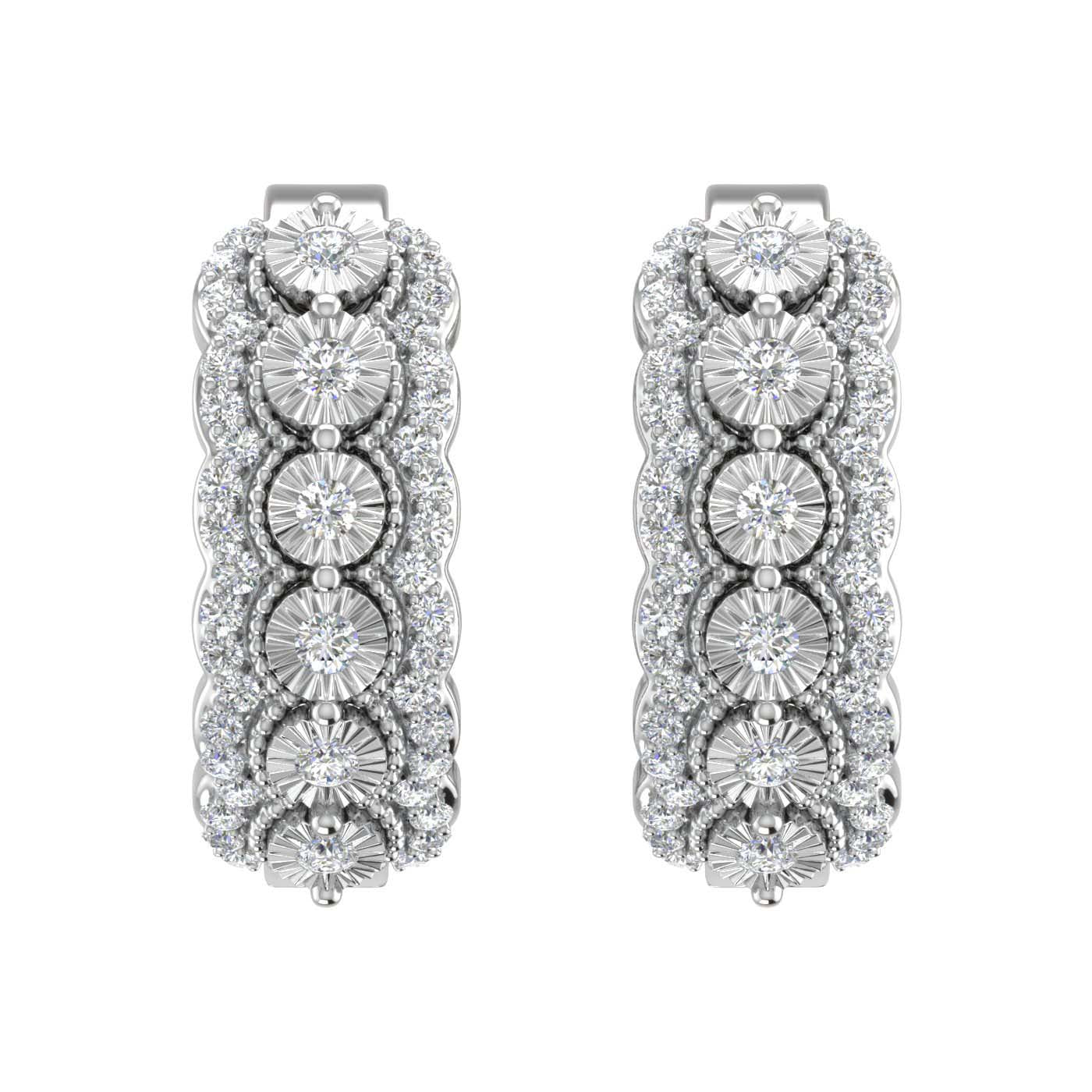 Simply mesmerizing, these gorgeously designed huggies earrings are crafted from 14K gold and rendered with 88 IGI certified diamonds of 1/2 carat weight and hinge back for a perfect fit. These huggies are a beautiful mix of the modern and vintage era.