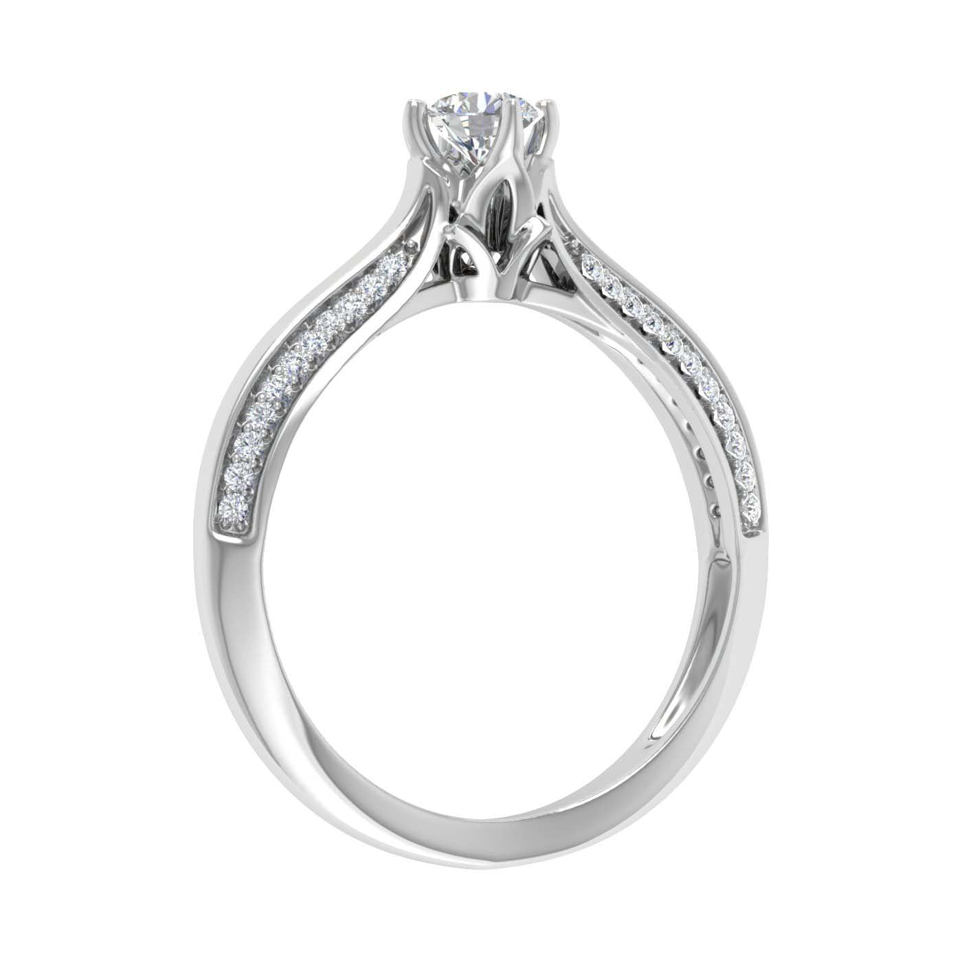 This enchanting diamond engagement ring is the most preferred piece of jewelry for making this auspicious day special. It is made in glowing 14K gold with sparkling white diamonds. This ring features 45 natural diamond of 1/2 carat weight. This ring is going to revive a lot of memories of this day attached to it, It comes with an IGI Certificate for authenticity.