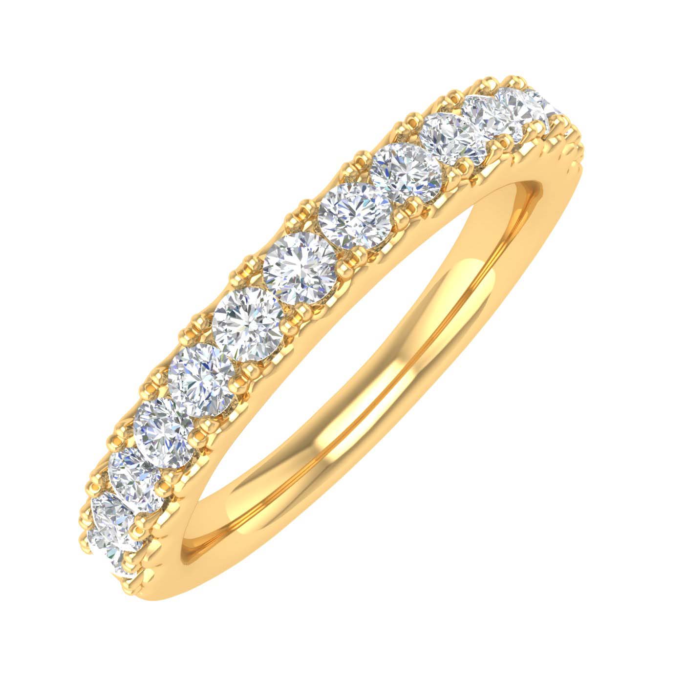 A sign of sheer elegance this gold wedding anniversary ring is a true classic. Set in 14k gold this ring features 1/2 carat of icy white diamonds. It is the most perfect piece of jewelry to cherish your special day with your loved one.