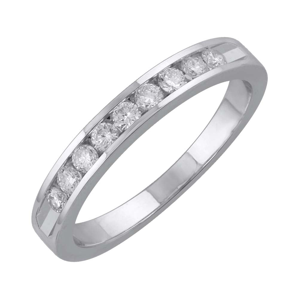 Increase the grandeur of your special day with this beautiful diamond wedding band. It is rendered in 14K gold and studded with 1/3 carat white diamond in such a way that the ring looks more attractive. Stones are secure with channel set. Start the most beautiful journey of your life with this ring.