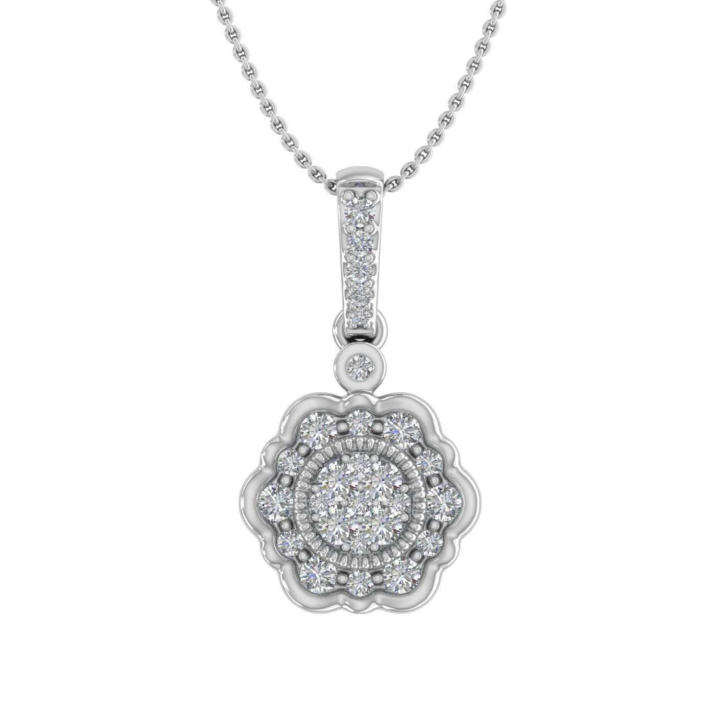 1/3 Carat Diamond Floral Pendant Necklace in Gold (Silver Chain Included) - IGI Certified