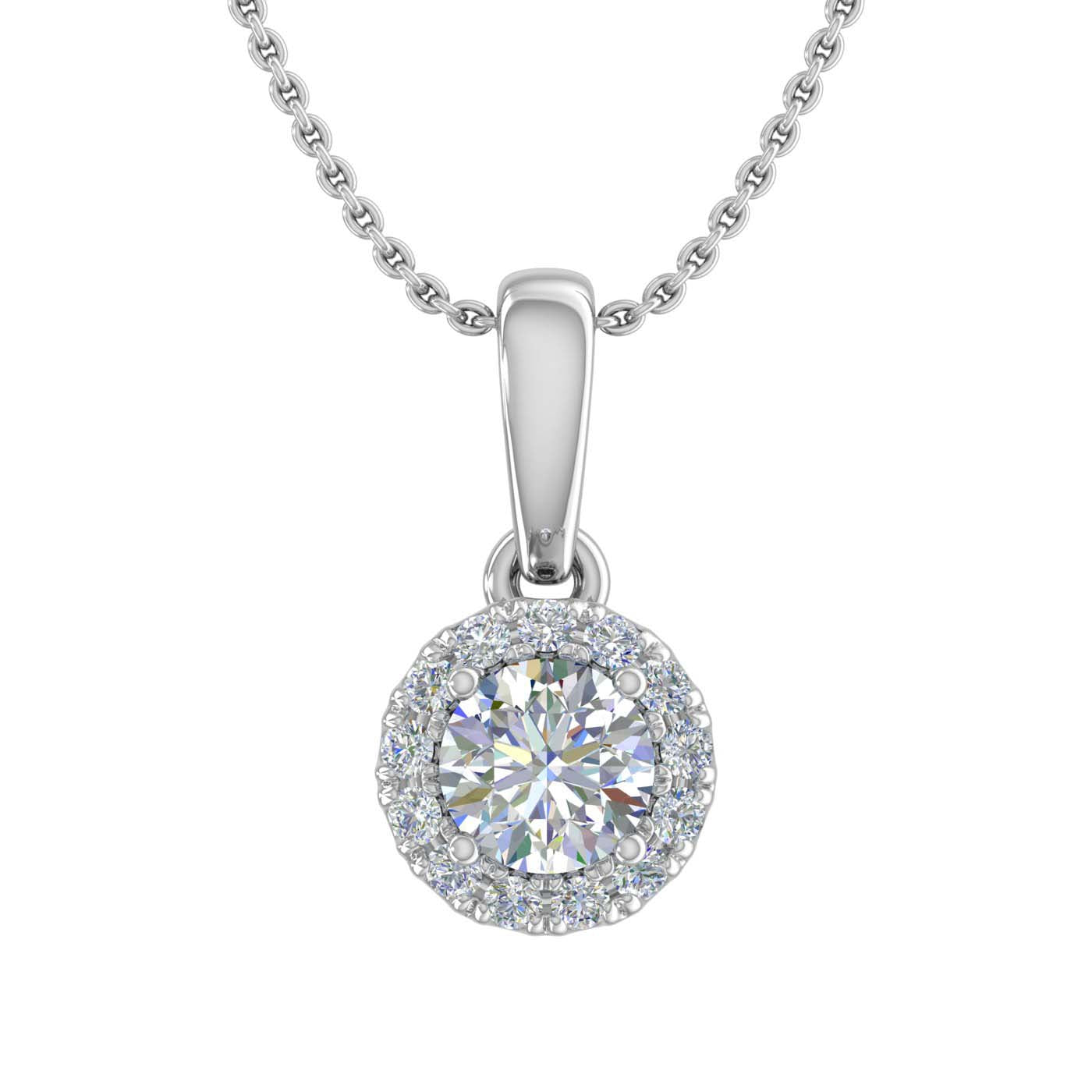 1/3 Carat Diamond Halo Pendant Necklace in Gold (Silver Cable Chain)